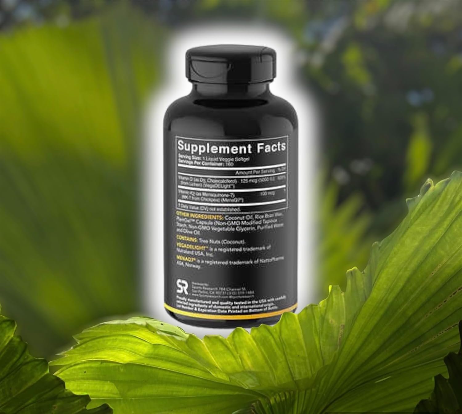 2 – In – 1 Support 125 mcg. Vitamin D3, 5000 IU With 100 mcg. Vitamin K2, as MK-7