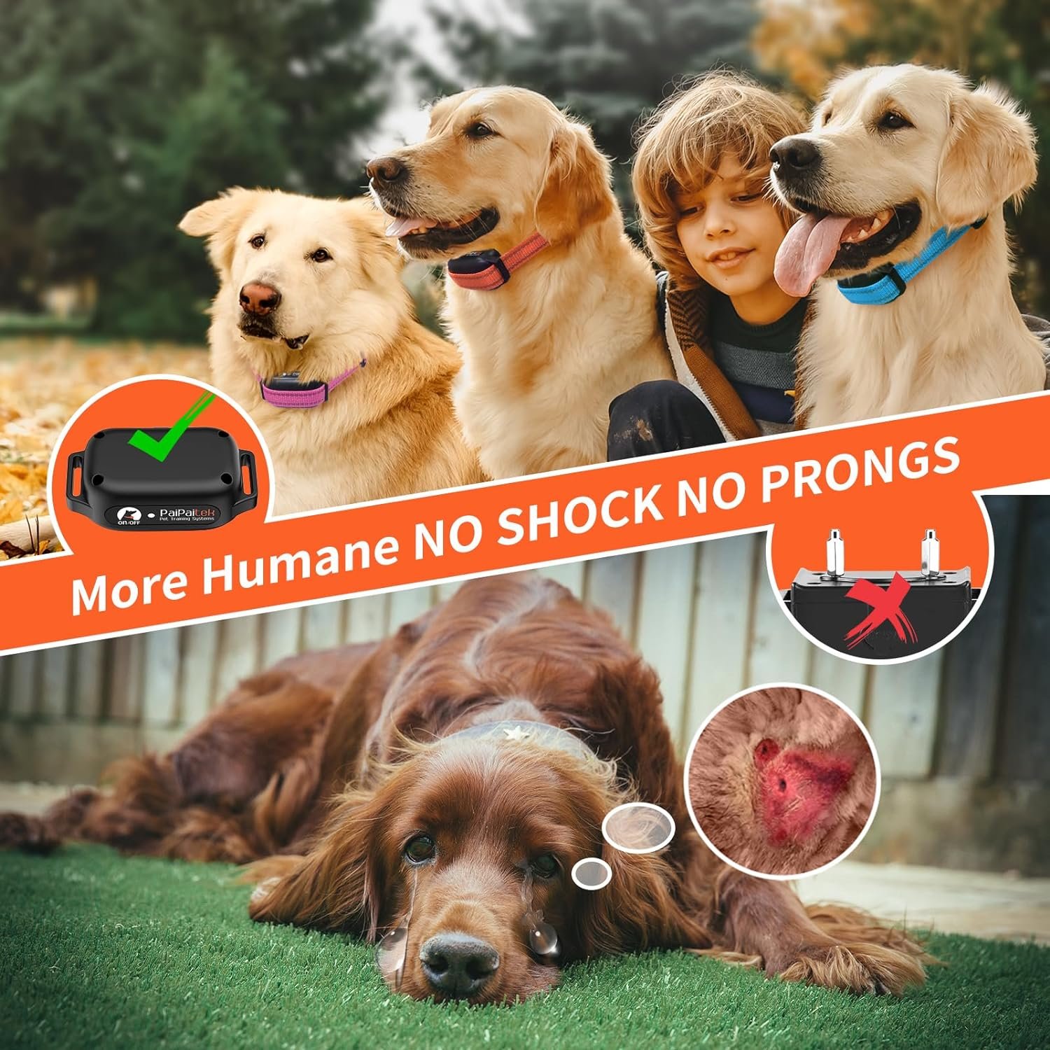 PaiPaitek is the first company to develop and sell shockless and prongless training collar just to give our customers a gentler, painless and effective dog training collar. There are no prongs on this collar digging into the dog’s neck, and its smooth surface ensures a comfortable fit on the dog’s neck.
