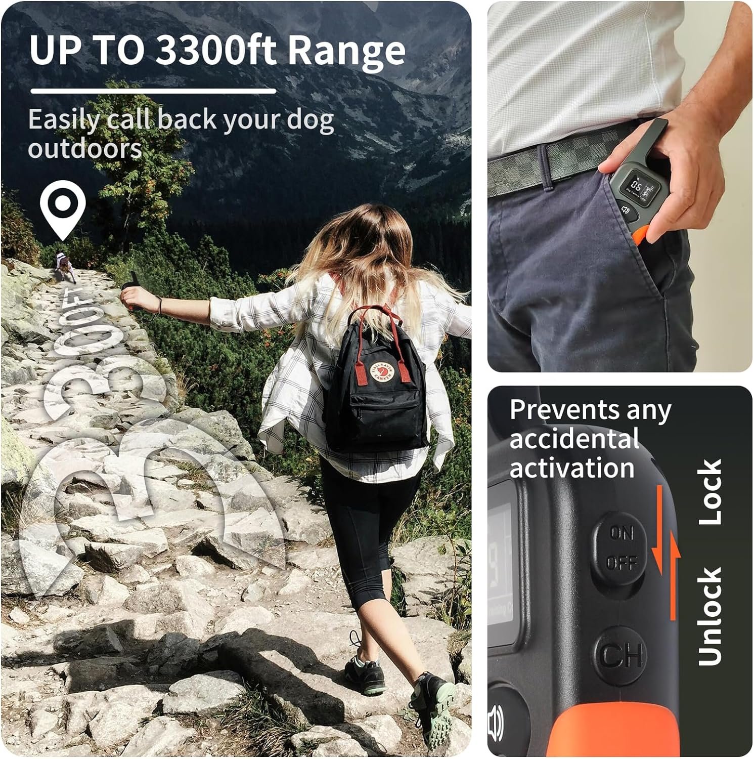 The Security Lock design prevents any accidental activation whether the remote is in your pocket or in your hand, eliminating sudden scares for your furry friends. Silicone design on the side of the remote provides a non-slip grip and comfort.