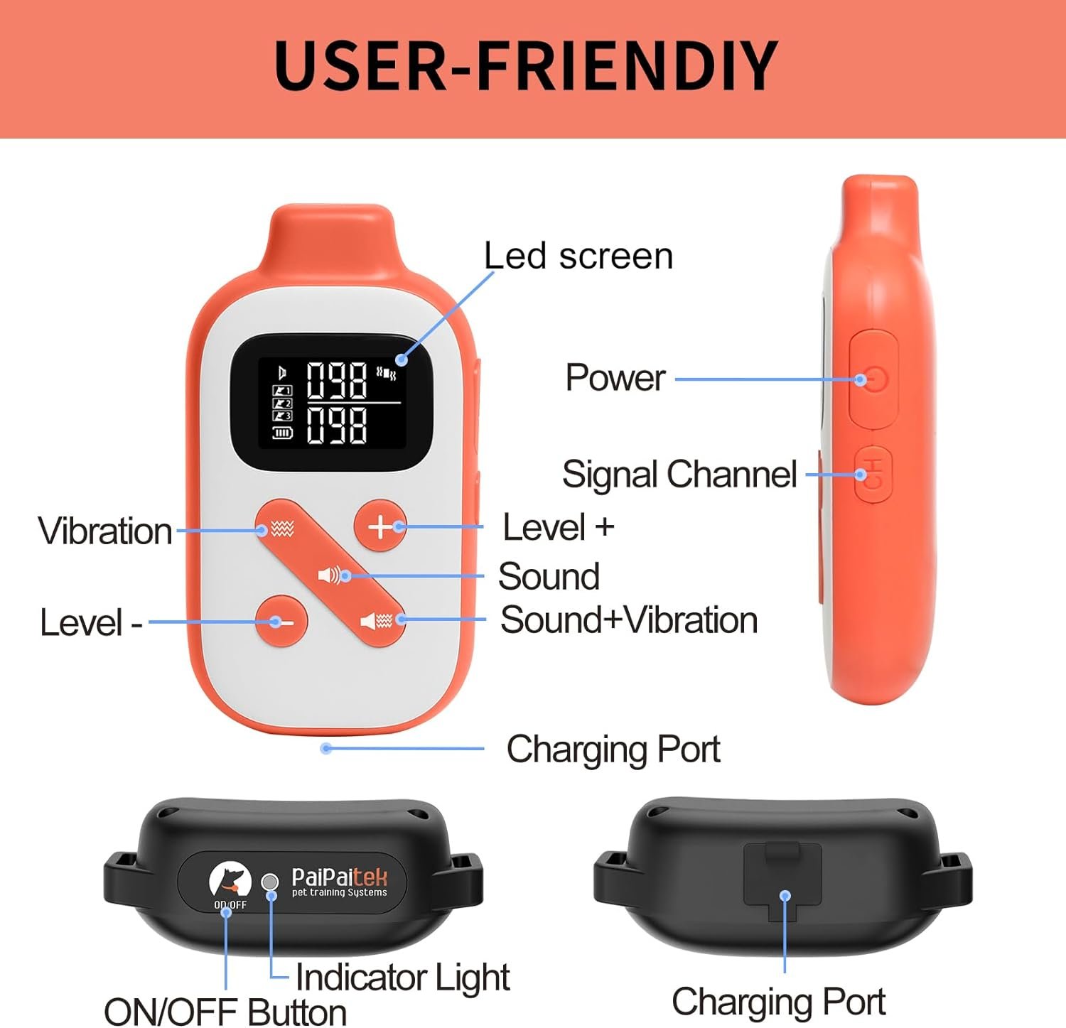 PaiPaitek vibrating dog collar is designed for COMFORT and SAFETY. There are NO PRONGS to dig into your dog’s neck, making it more comfortable than other brand collars. Say Goodbye to Painful Electric Shocks and use more humane training tools! This buzz collar uses only gentle vibrations and sounds to effectively train your dog’s behavior without causing any pain or discomfort.
