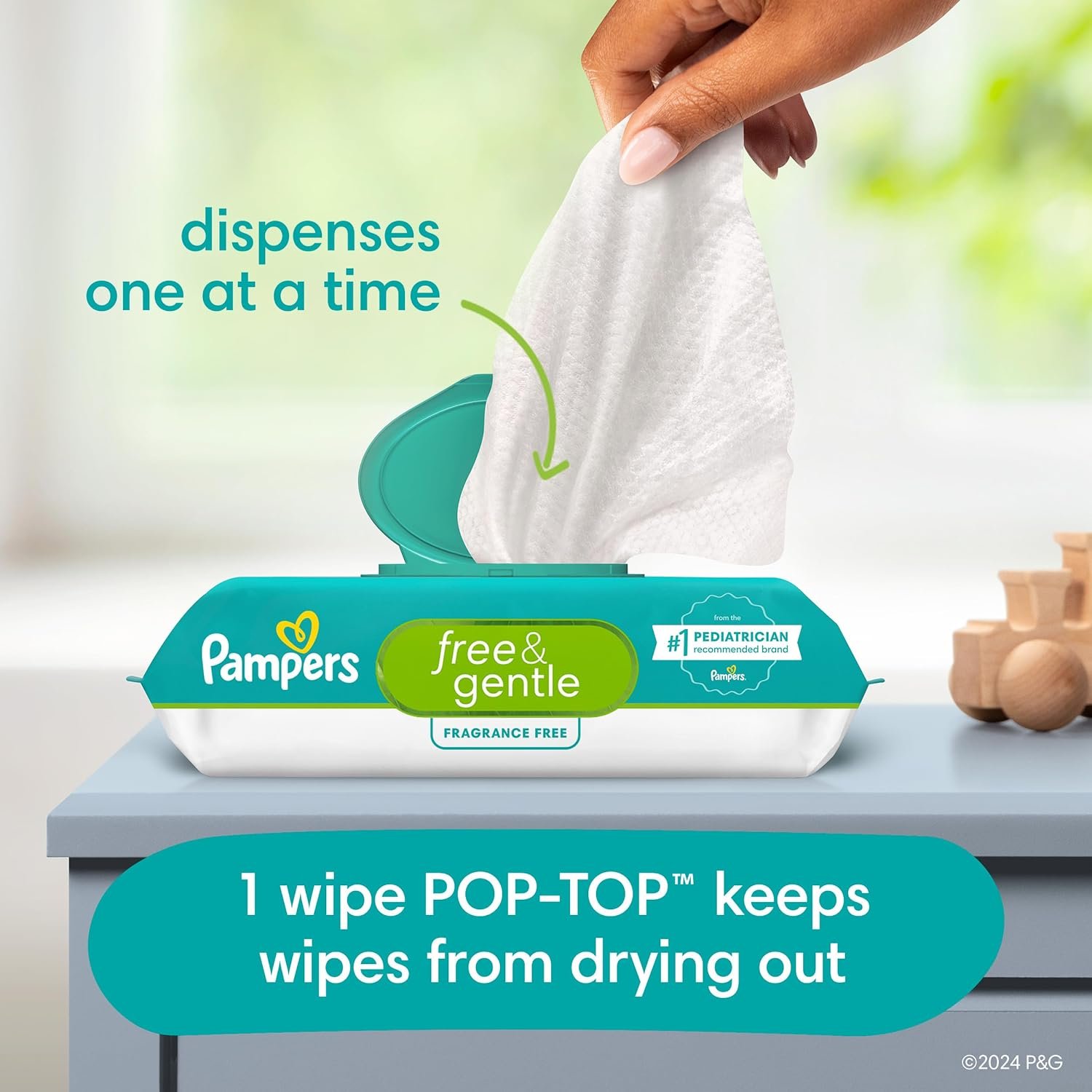 Pampers Free & Gentle wipes packaging features a unique 1-wipe POP TOP that is designed to dispense just one wipe at a time, which helps to prevent the wipes from drying out. And you know that you can trust Pampers Free & Gentle Wipes because they are made by Pampers, the #1 pediatrician-recommended brand. Want the perfect pairing for healthy skin? Use Pampers Free & Gentle wipes and Pampers Swaddlers diapers together.