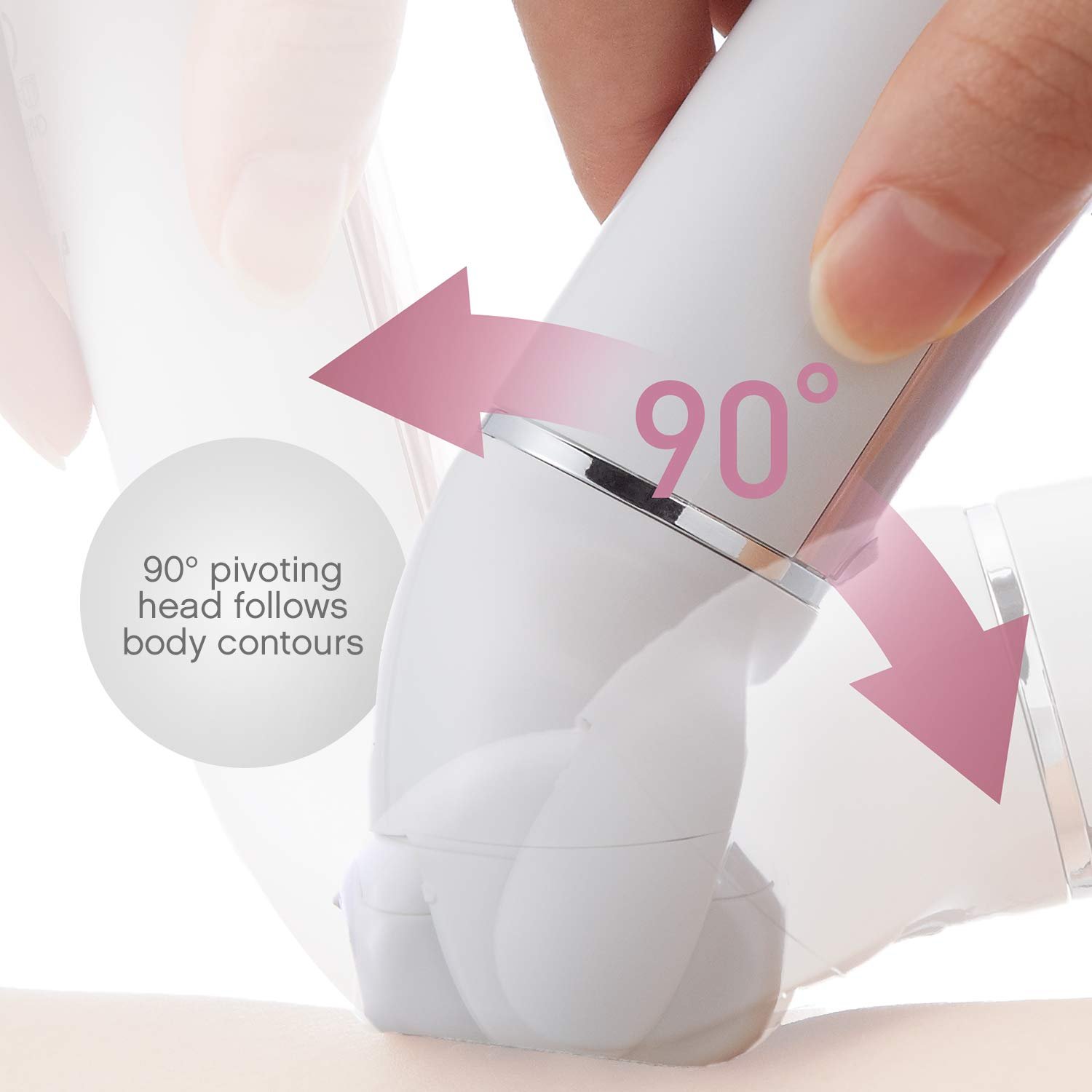 EASY CORDLESS EPILATION: for hard to reach areas, a 90 degree pivoting epilator head closely moves along the contours of your body; a cordless design makes it easy to use the epilator anytime, anywhere