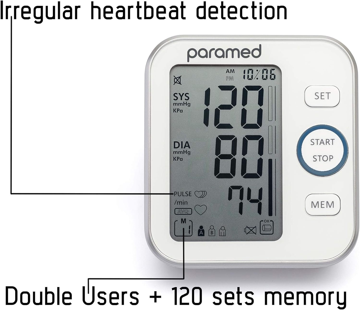 2 users memory: Store up to 120 readings and save between 2 profiles for 2 different users. Features a Low Battery & Date display functions