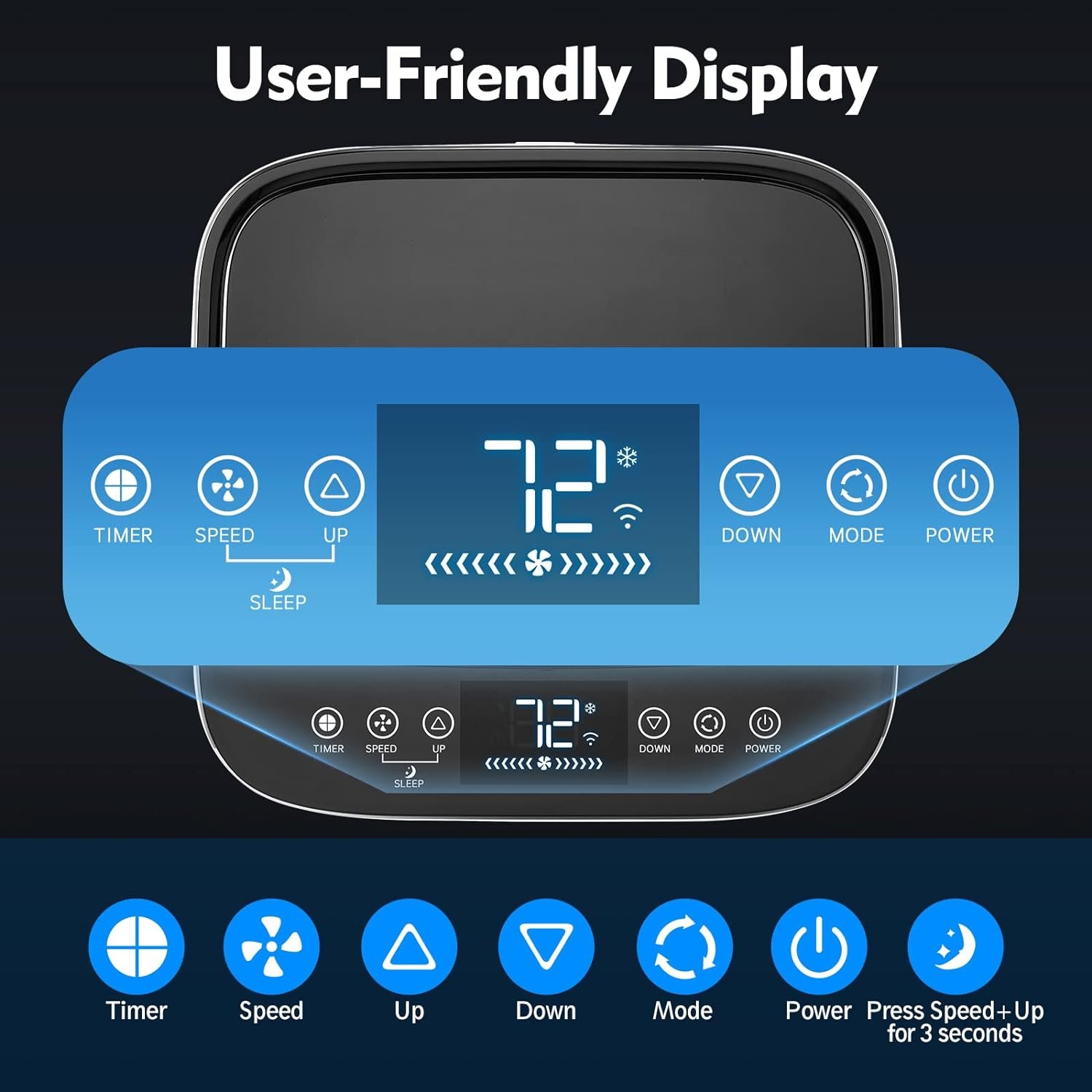 📜 4-in-1 DESIGN: The air conditioner not only a cooling and dehumidifying machine but also has fan and sleep mode functions, providing more choices to suit various needs. You can not only get the refrigeration effect of a portable ac unit but also help reduce humidity.