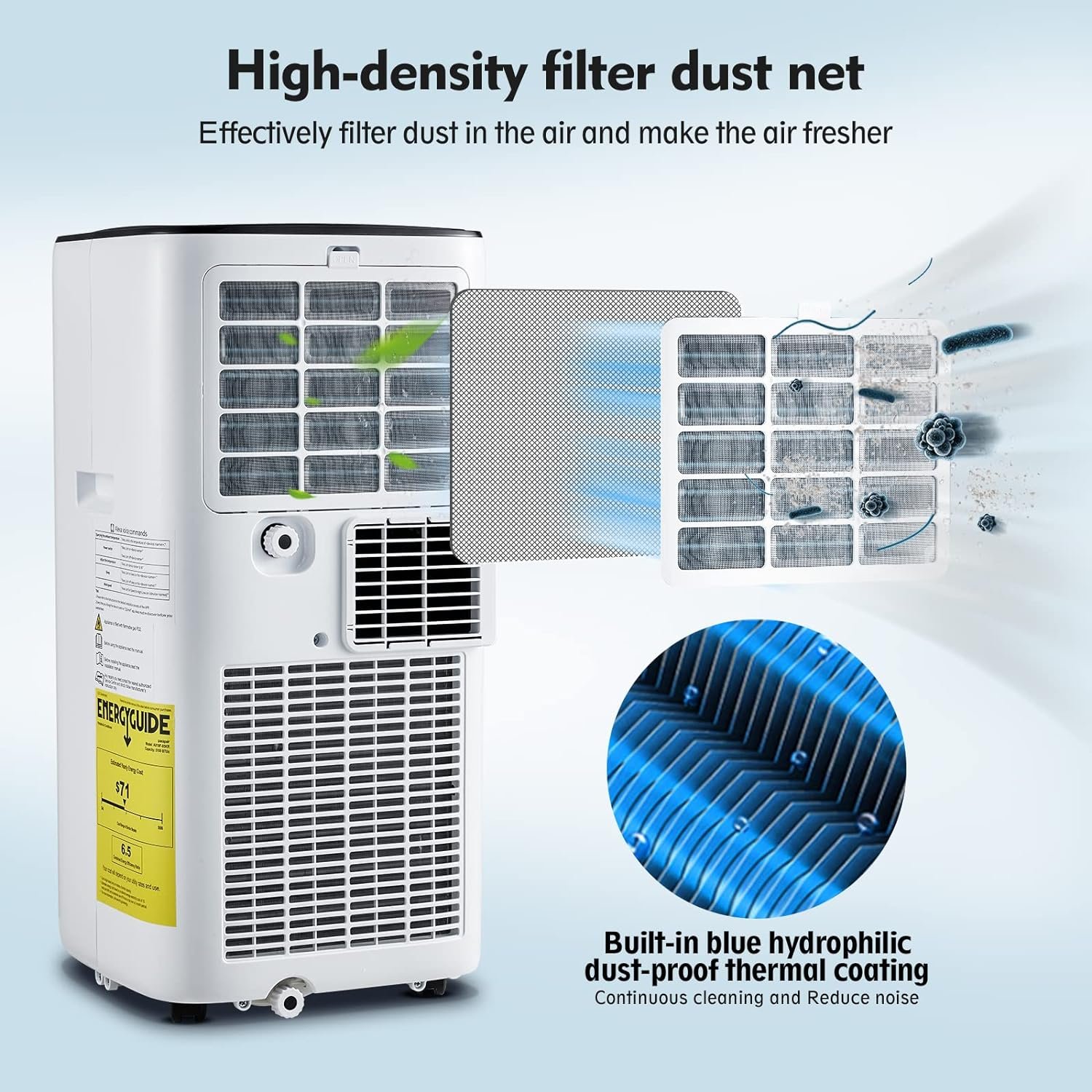 🎨 WASHABLE AIR FILTER- The portable ac unit has a removable and washable double-layer filter to protect you and your family from dust, pet dander and hair. We highly recommend you clean the air filter every two week of operation to get the better performance. Regular cleaning and maintenance will ensure its conditioning efficiency and help prevent air quality problems.