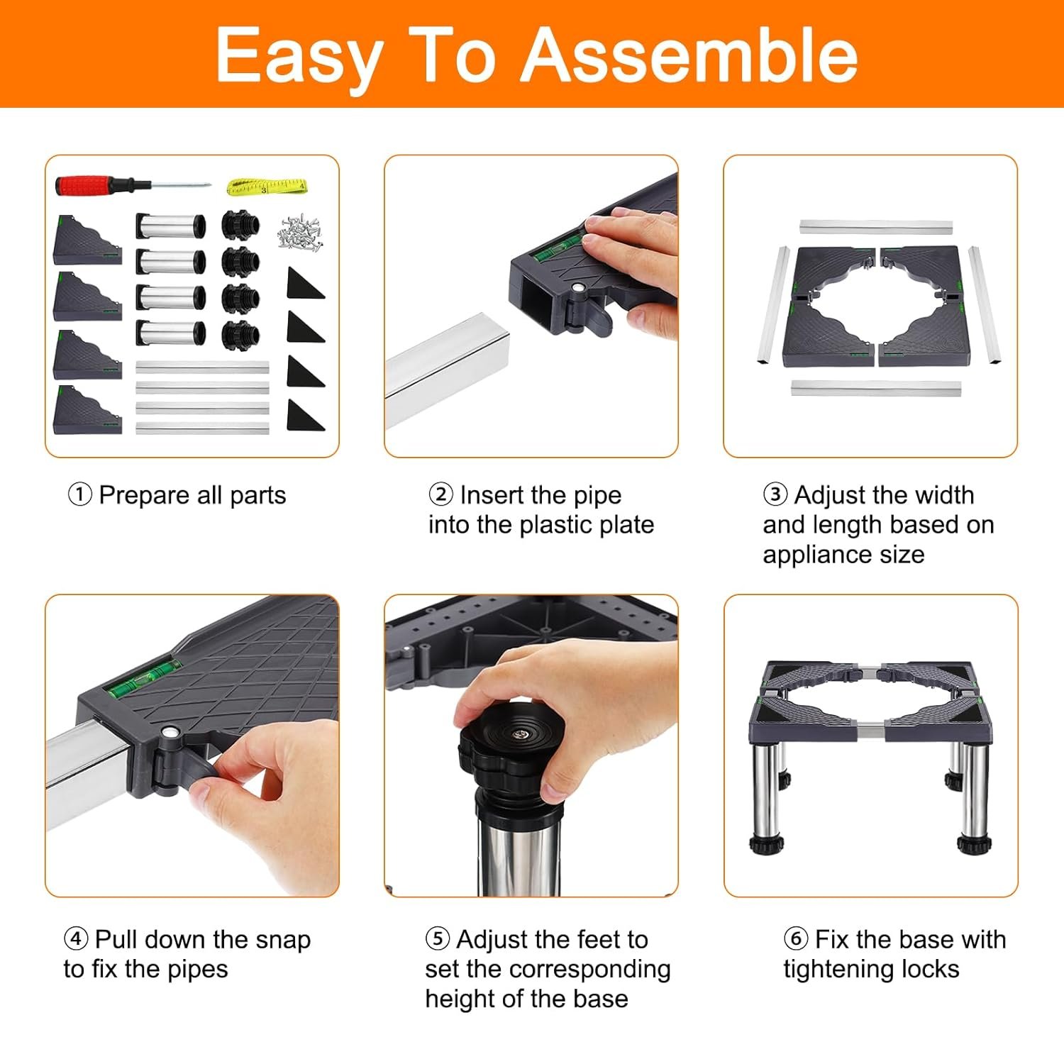 Application: The adjustable washing machine helps you easily move and fix heavy household appliances in your home and dormitory, such as mini refrigerators, washing machines, refrigerators, mini refrigerators, dryers, or other household appliances.