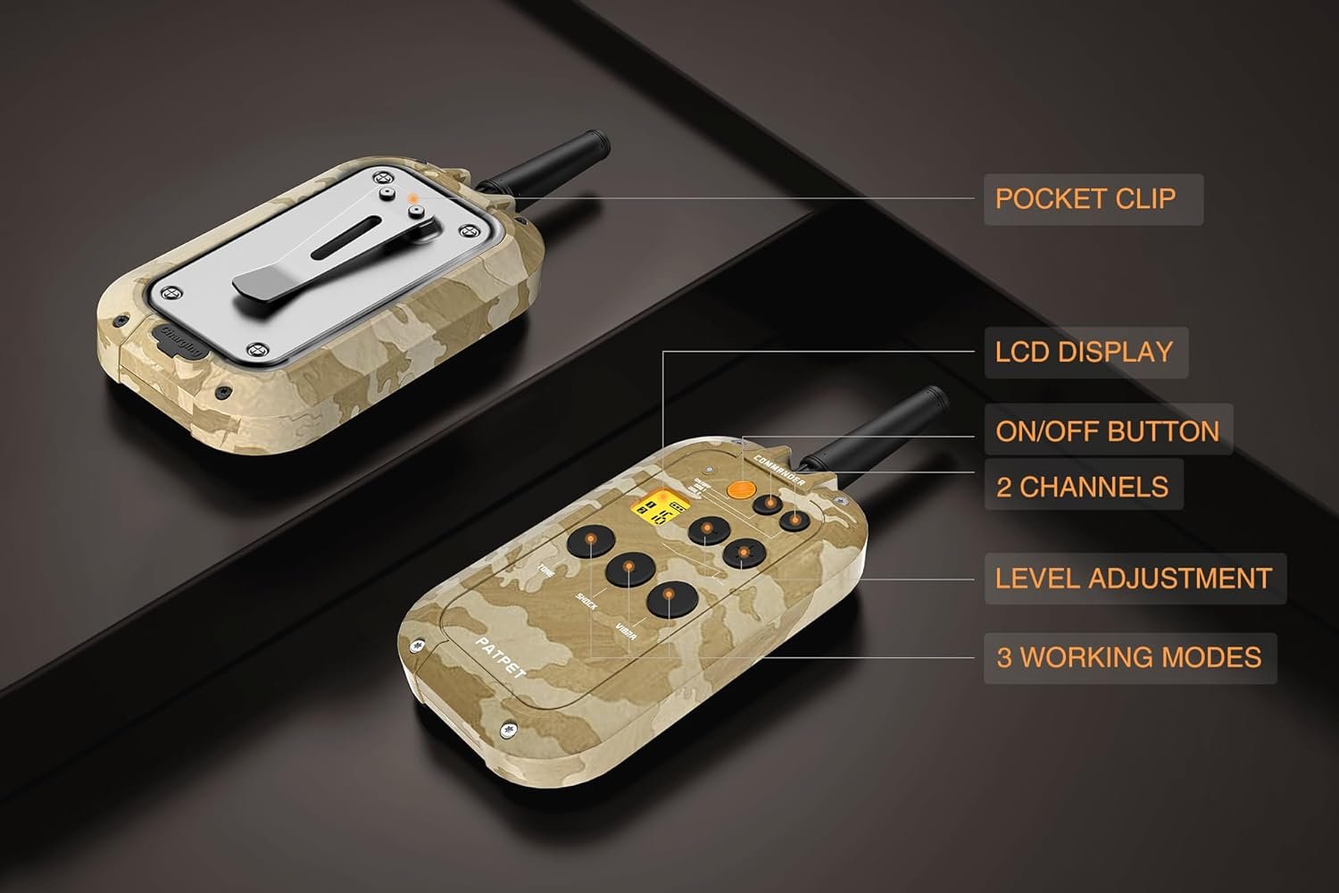 【Nice Gift & Luxury Enjoyment】Advanced Textured remote control is easy to use. Camouflage 920 is stored in a black storage toolbox, convenient to carry & easy to store. Patpet dog training collar is also a good gift for your friends or relatives who have dogs.