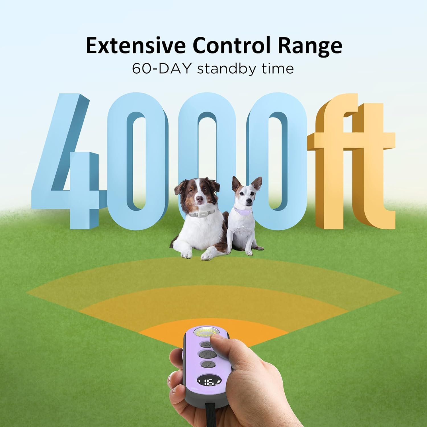 984 to 4000ft range, IPX7 waterproof. This remote can be up to 4000 feet in open areas with no obstructions. You can train your dog indoors, and outdoors easily and freely