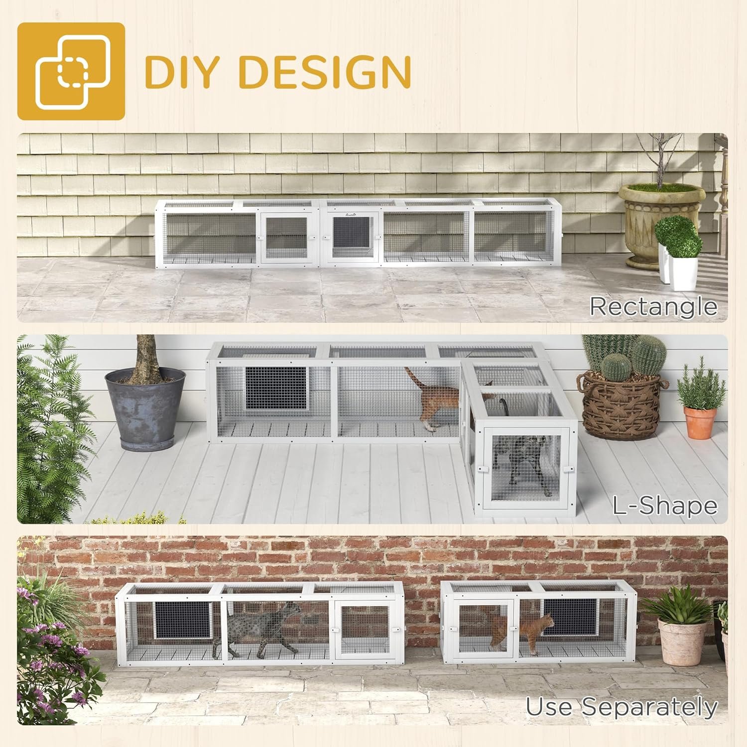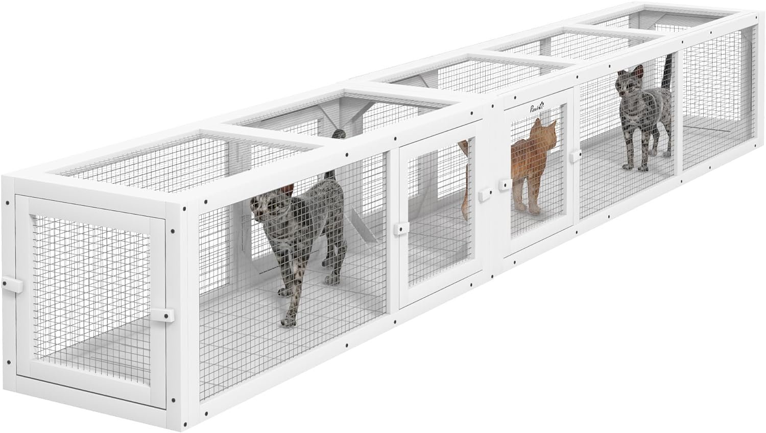 Linkable design allows endless options with four entrances to connect the tubes; Allows an L shape, expansion from the left and right, or even a cat tent or a catio at the end; Weather protection ensures outdoor friendliness with water-resistant paint; Wide for a cat to turn around easily; Sunlight streams in, making it easy for cats to love the interior; Suitable for cats up to 10 lbs.; Assembly required;