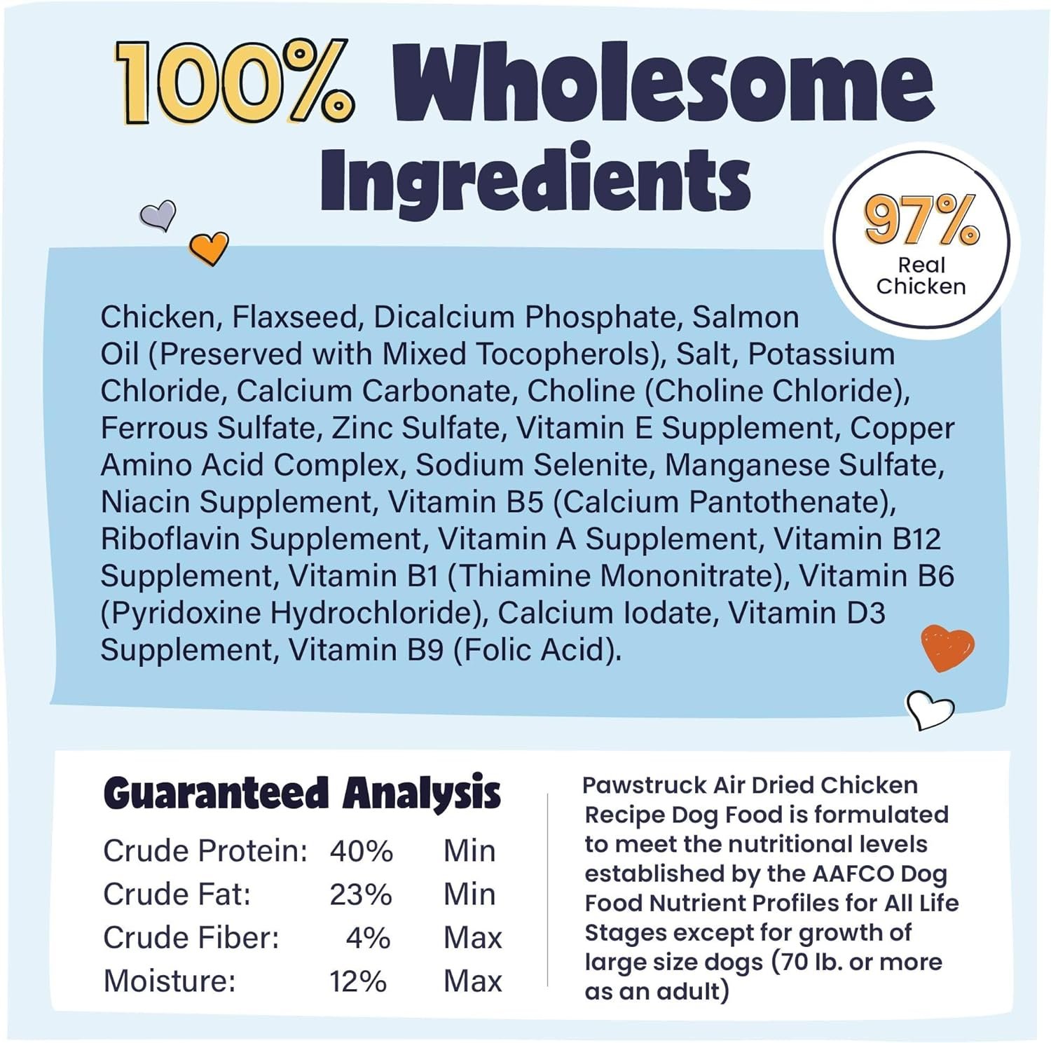 Pawstruck All Natural Air Dried Dog Food w/Real Chicken – Grain Free, Made in USA, Non-GMO & Vet Recommended – High Protein Limited Ingredient Wholesome Full-Feed – for All Breeds & Ages – 2lb Bag