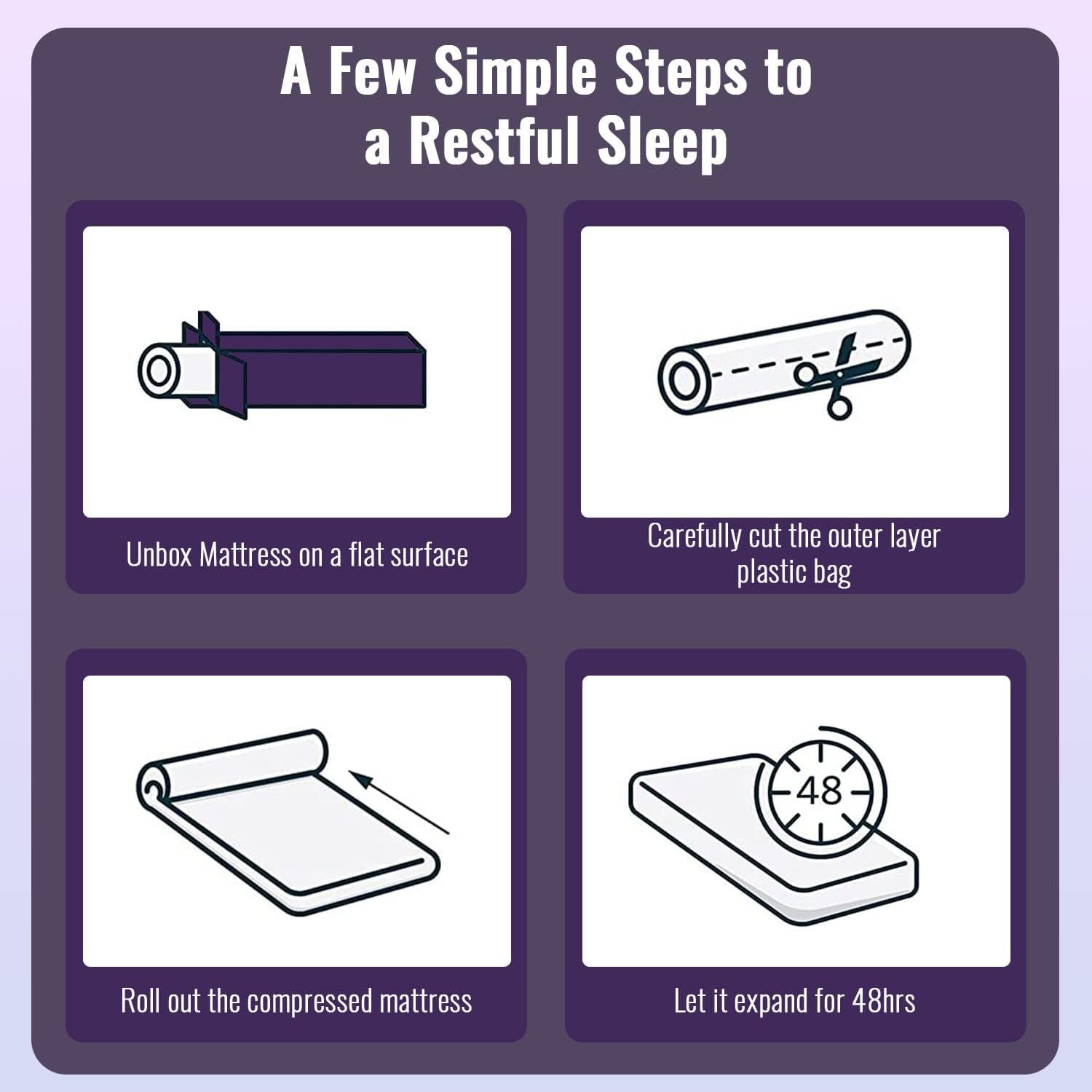 【Easy to install and use】: Our bamboo charcoal memory cotton mattresses are packaged in roll wrap. After opening the mattress, please allow 24-72 hours for the mattress to return to its original state. Any memory foam will expand faster in a warm room. In cold temperatures, the mattress may take longer to recover from compression. The expansion time of a mattress may vary depending on the surrounding environment.