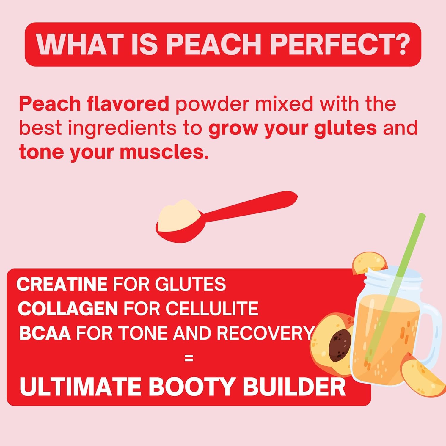THE ULTIMATE CREATINE FOR WOMEN (MUSCLE GROWTH & TONED SHAPE): Peach Perfect is a one-of-a-kind blend of the highest purity Creatine Monohydrate for Glute and muscle growth, BCAAs for muscle tone and recovery, and Collagen to promote anti-cellulite. Our peach creatine supplement is specifically formulated for women to help promote lean muscle growth, particularly in the glutes and booty.