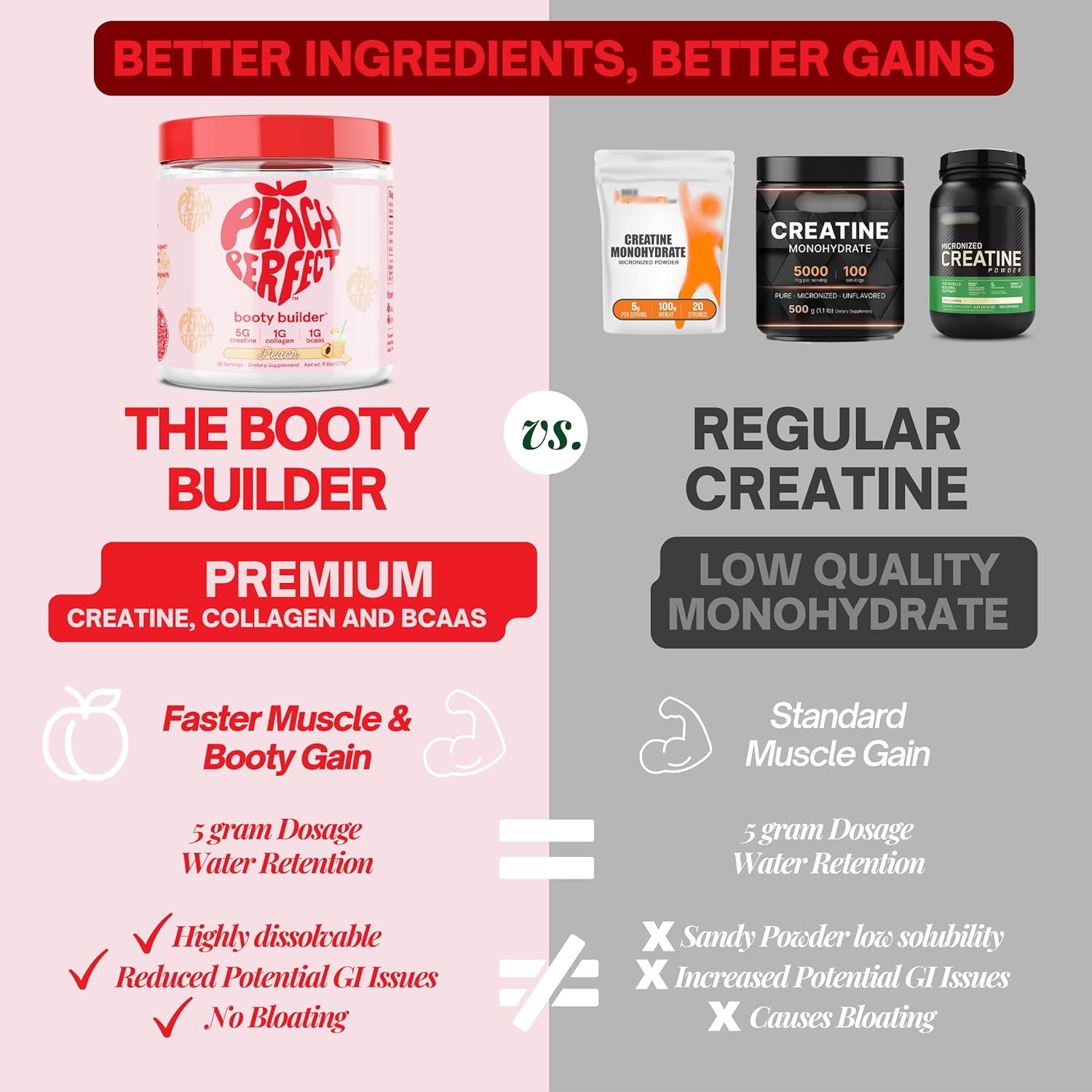 BYE BLOAT, HELLO BOOTY: Say bye to the bloat because we use the best grade of micronized creatine monohydrate with highest dissolvability. Inferior creatines have low dissolvability leading to bloat, gas, and GI issues. This is because they prioritize profit over people (low quality creatine). Peach Perfect is made with the highest purity Creatine that is 250% finer than traditional monohydrate. Creatine is the most studied supplement in the market, boosting energy, muscle gain, and fat-loss.