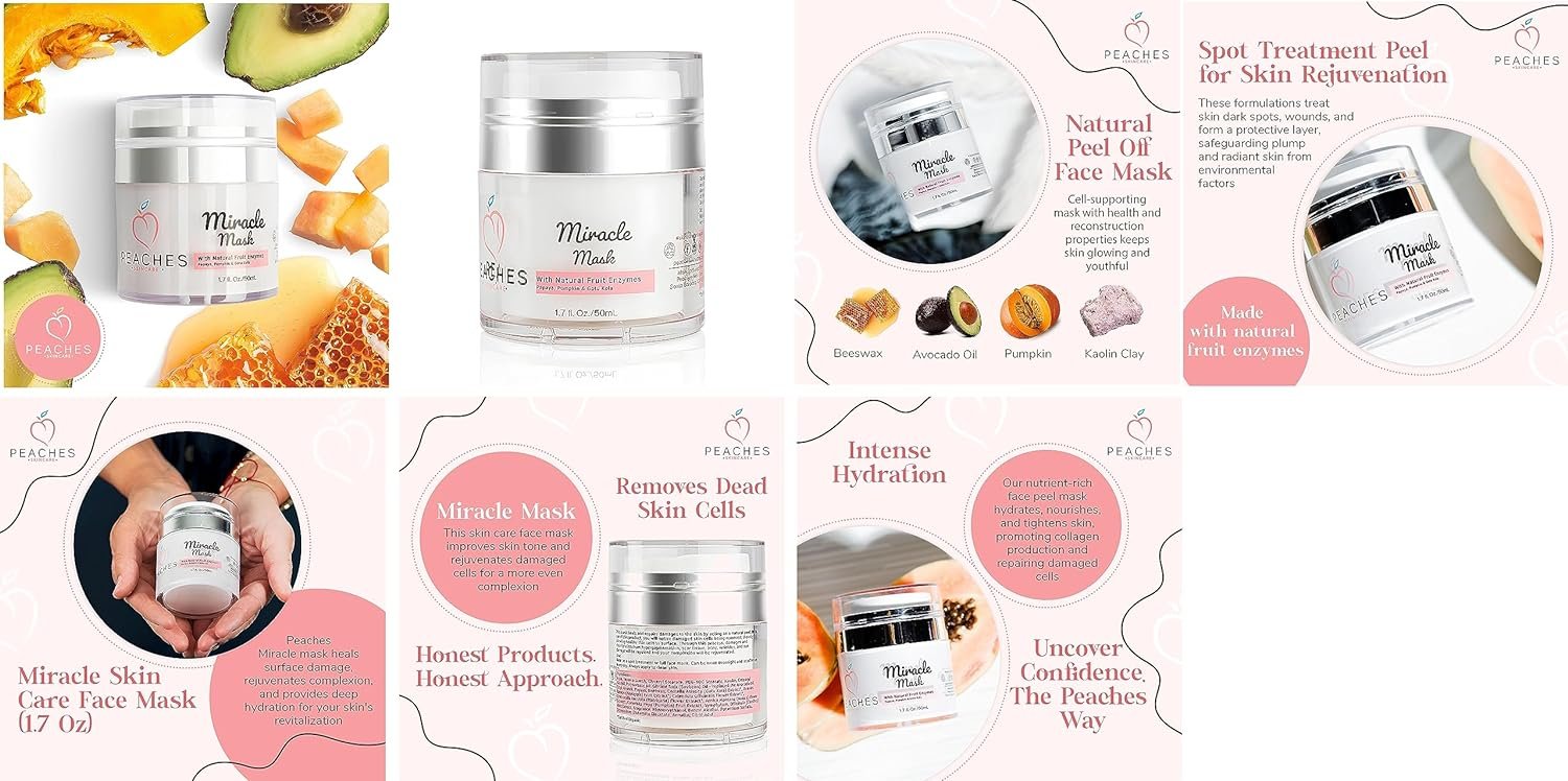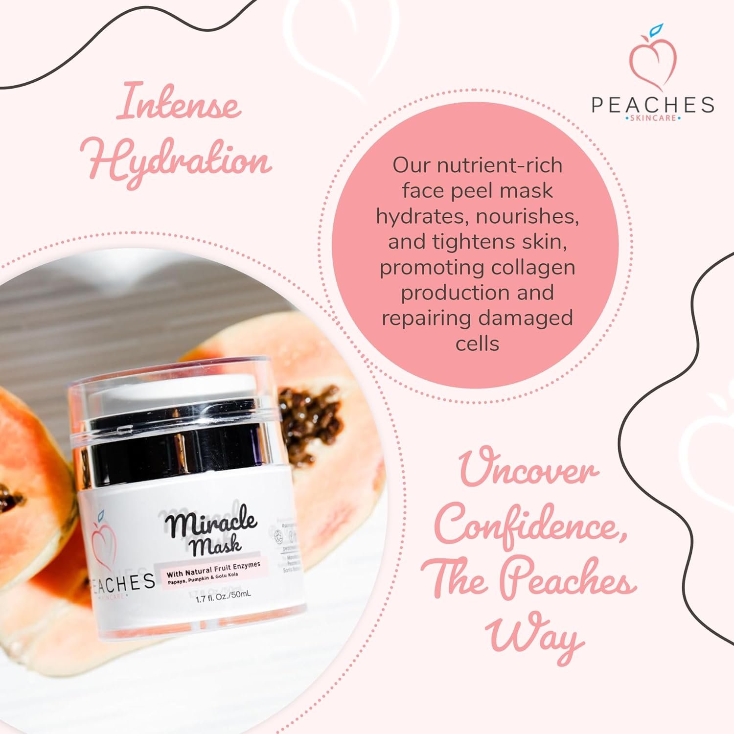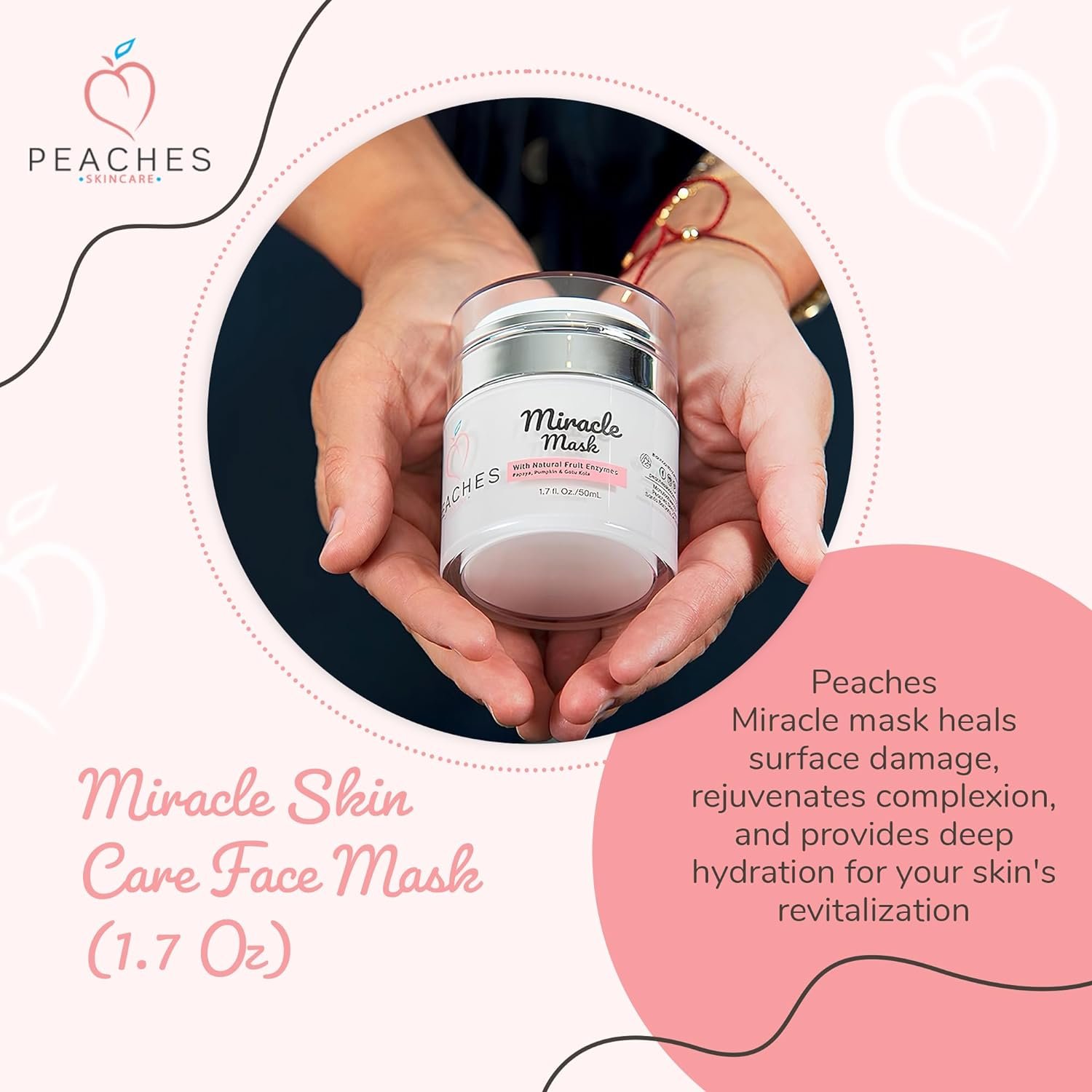 Miracle Face Cleanser Mask: Give your skin some tender care to give it a more radiant and beautiful glow with the Peaches Miracle pore cleansing mask! This 1.7 oz facial mask is made from vegan derived natural ingredients that heal damages on your skin surface and refresh your complexion.