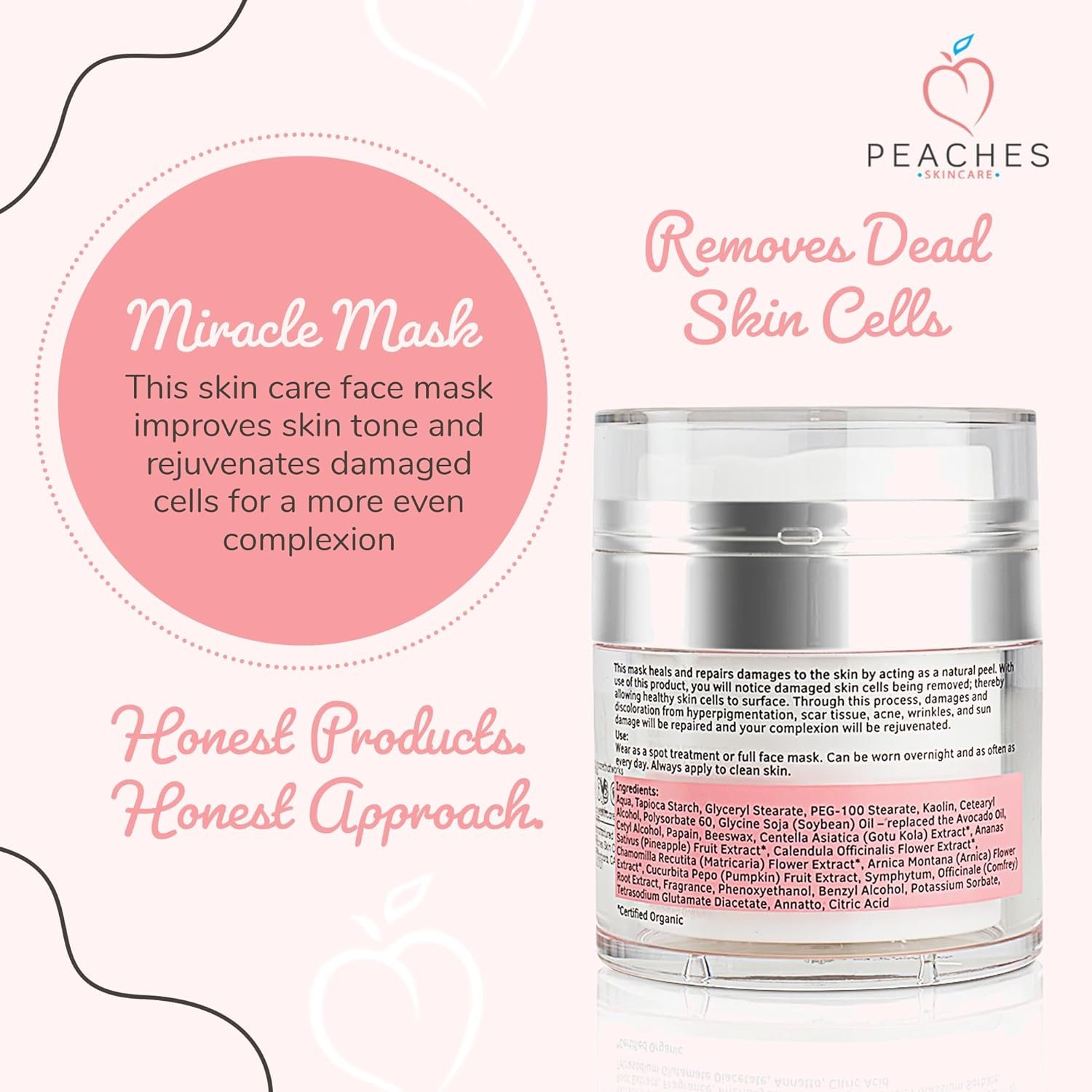 Peaches Skin Care Miracle Skin Care Face Mask (1.7 Oz) Natural Peel Off Face Mask w/Beeswax, Avocado Oil, Pumpkin Exfoliating Face Mask to Remove Dead Skin Cells Spot Treatment for Skin Rejuvenation