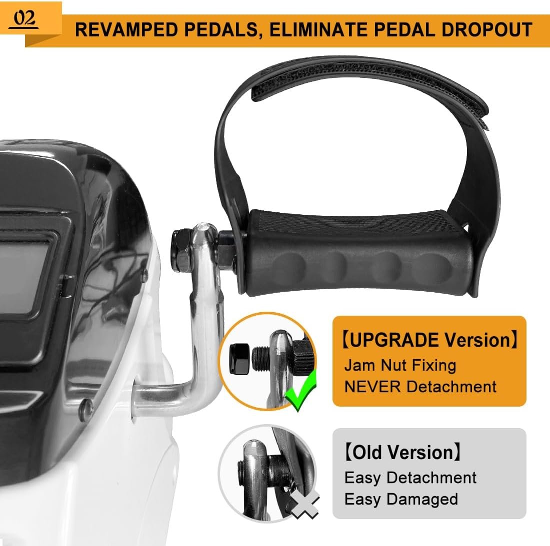 【HEAVY FLYWHEEL】Unlike ordinary plastic flywheels, this seated pedal exerciser features a heavy metal flywheel to improve stability. An internal 5-pound steel flywheel makes it effortless to use in for a long time, and can bear more than 400 pounds.