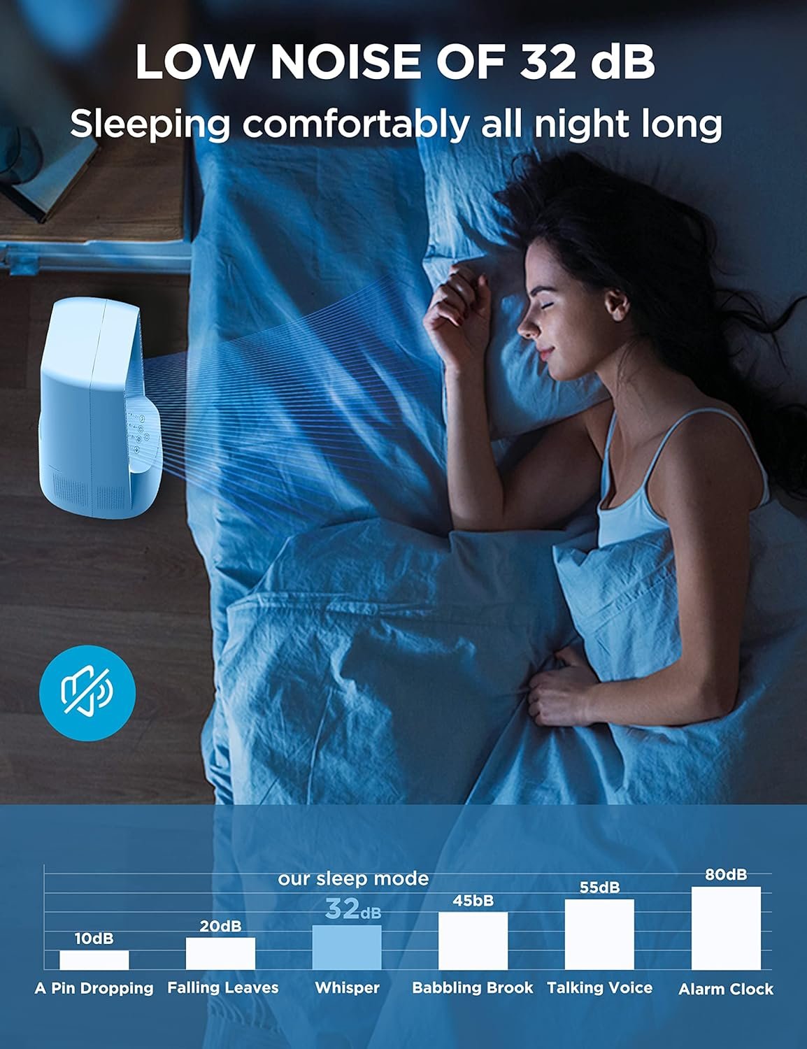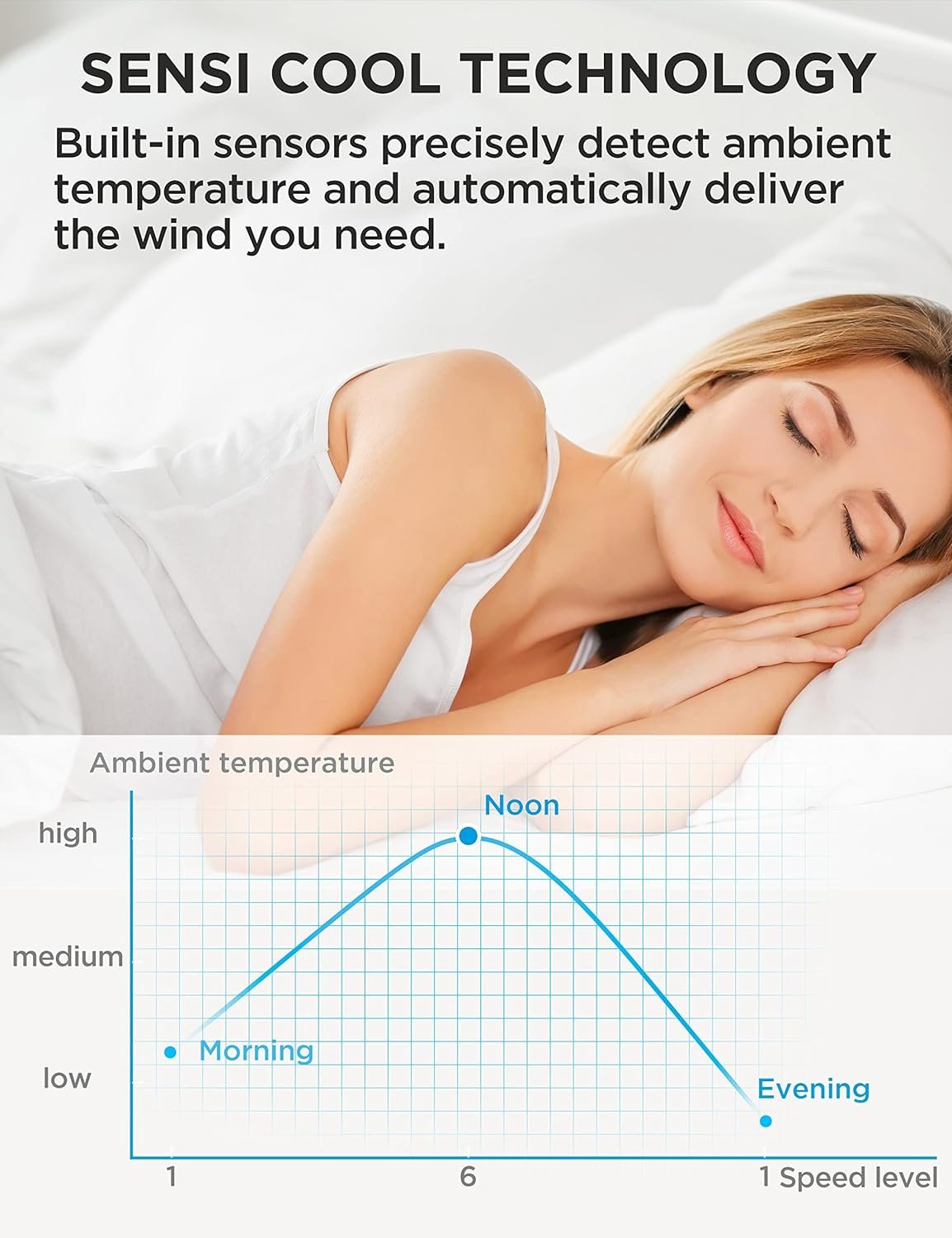 Customizable Cooling Experience: With 6-speed settings and 4 wind modes, you get to decide how you want to beat the heat. Whether you prefer a natural, sleep-friendly breeze or a stronger, normal wind, our fan has got you covered.