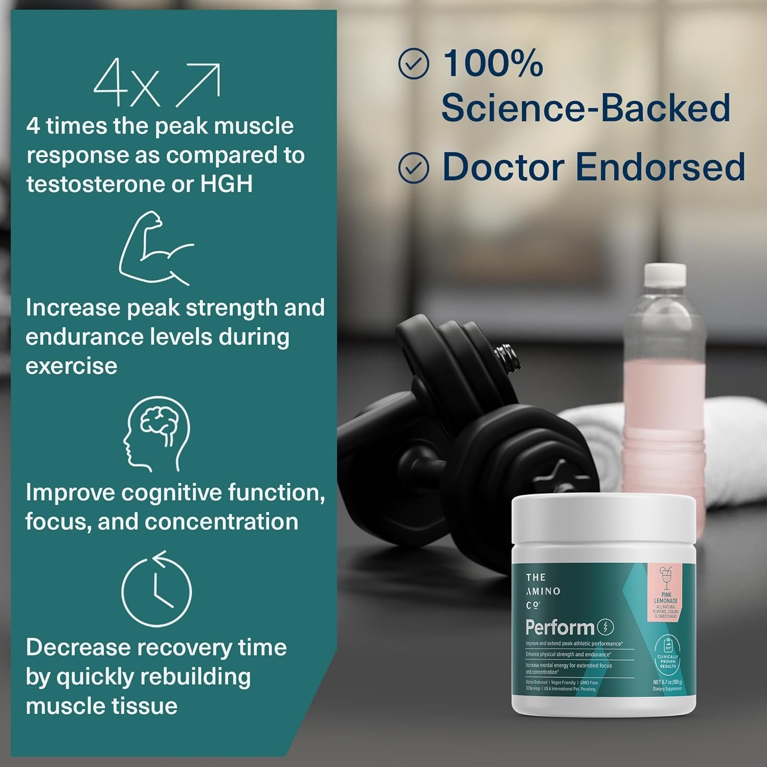 Peak Performance: Elevate your workout with Amino Co – Perform preworkout powder for men and women. Packed with essential amino acids, it enhances muscle strength, sharpens focus, and increases stamina. Experience energized, hydrated workouts.