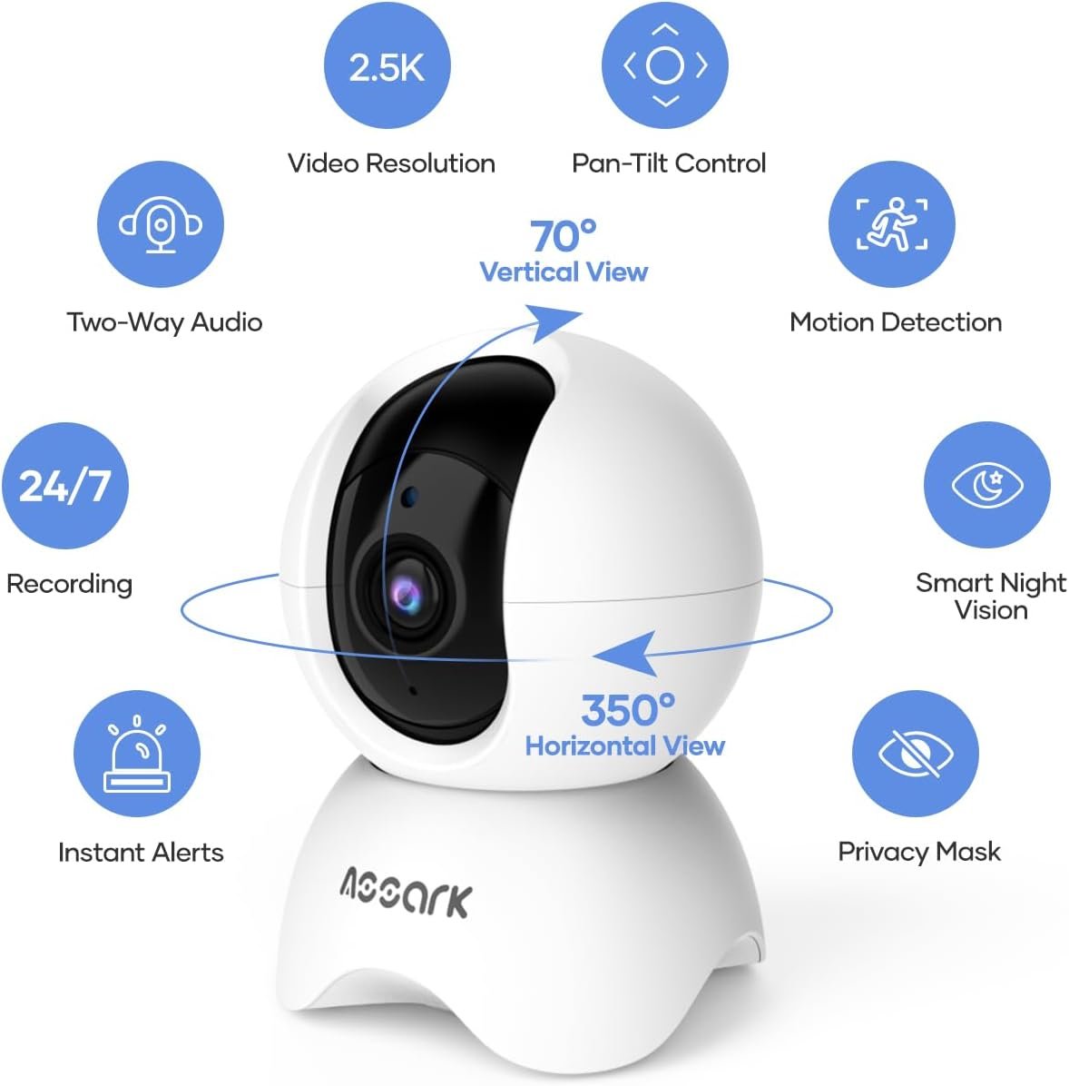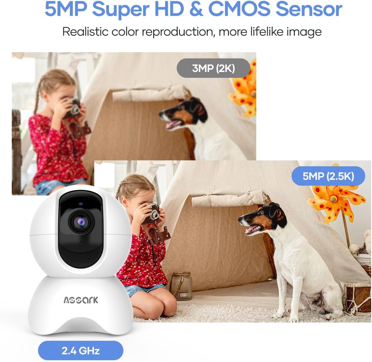 ✅【5MP Super HD】Assark pet camera records crystal-clear video footage in 5MP(2560×1920) of Super HD. Camera has an optional sleep mode for better privacy.(2.4GHz WiFi ✔️, 5GHz WiFi ❌)