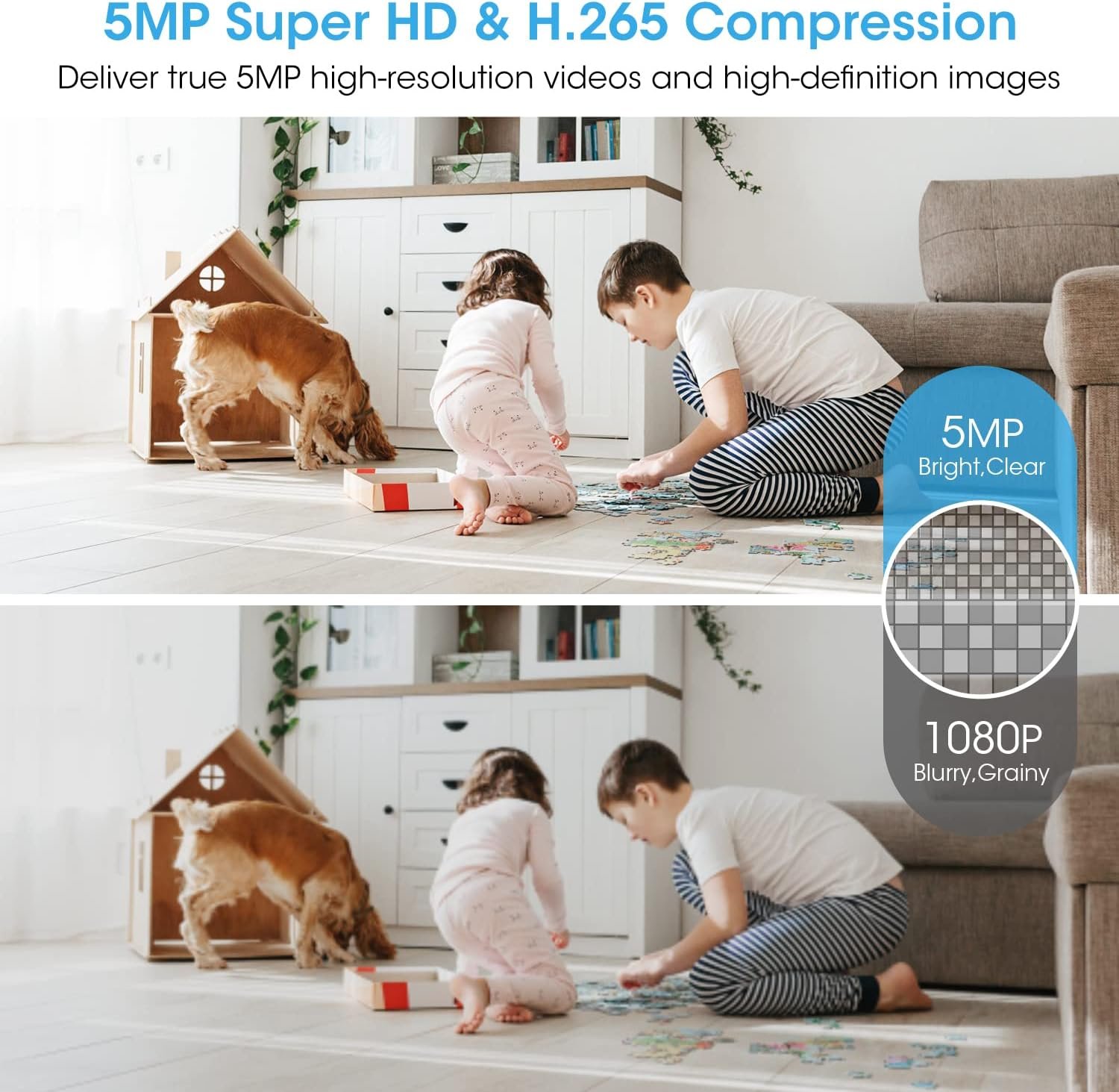 ✅【Night Vision】With 5MP Super HD and H.265 video compression,clear and smooth video streaming even at night. (Three options: day mode, night mode and auto mode)