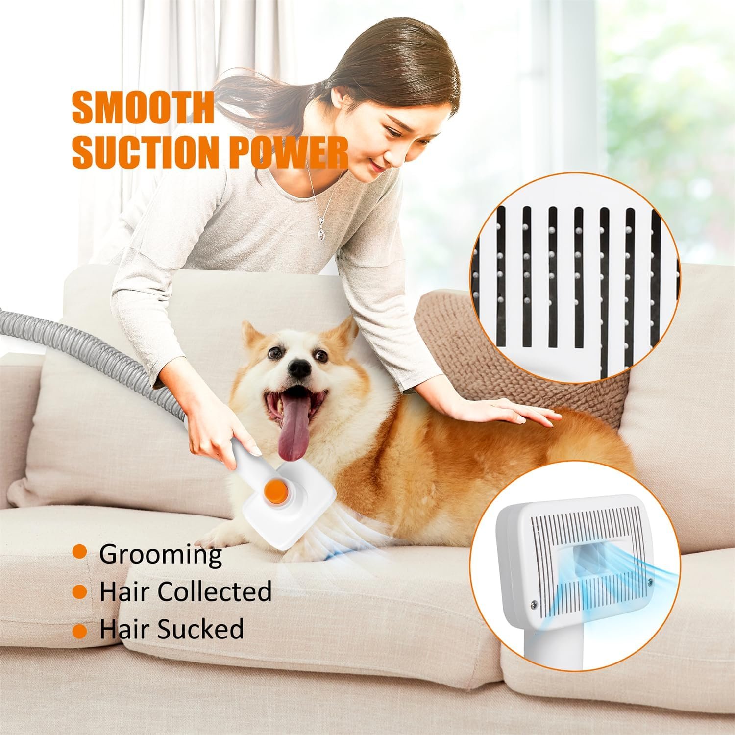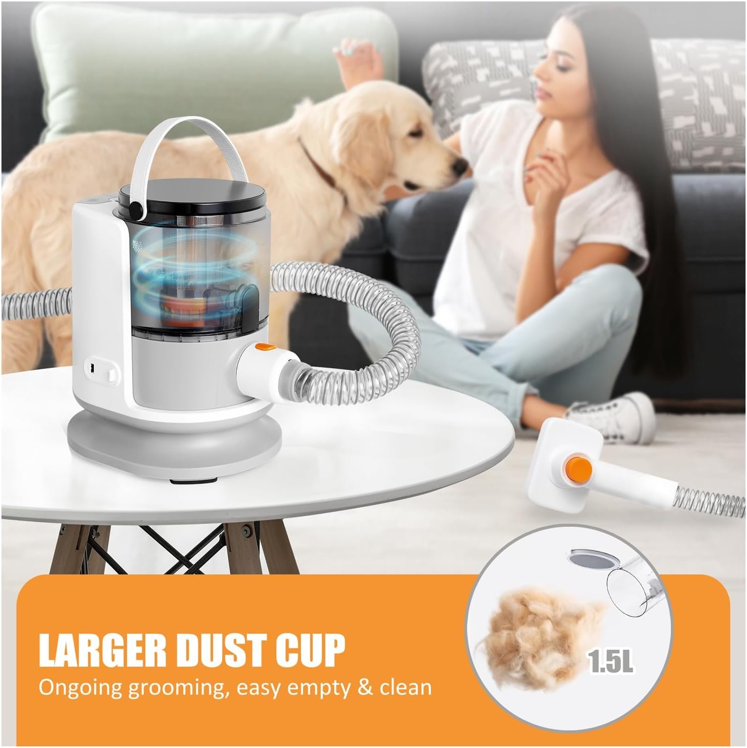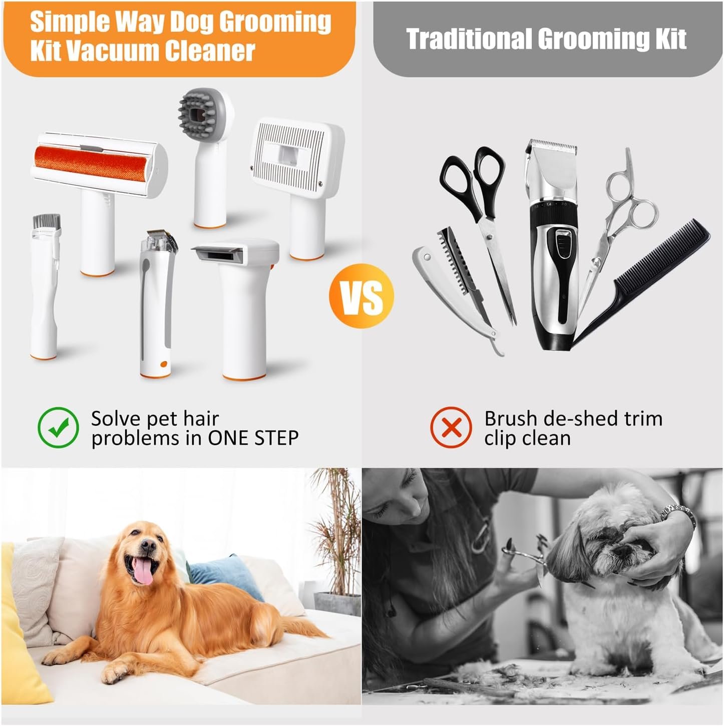 【6 in1 GROOMING KIT & VACUUM SUCTION】The Pro pet grooming vacuum kit comes with 6 proven tools: Electric Hair Clipper, Crevice Tool, Hair Remover Roller, Grooming Comb, Deshedding Brush and Massage Brush. To achieve cutting and suction All-in-one function, Upgrade stainless steel blade is safe enough for you to style your pet’s hair at home.