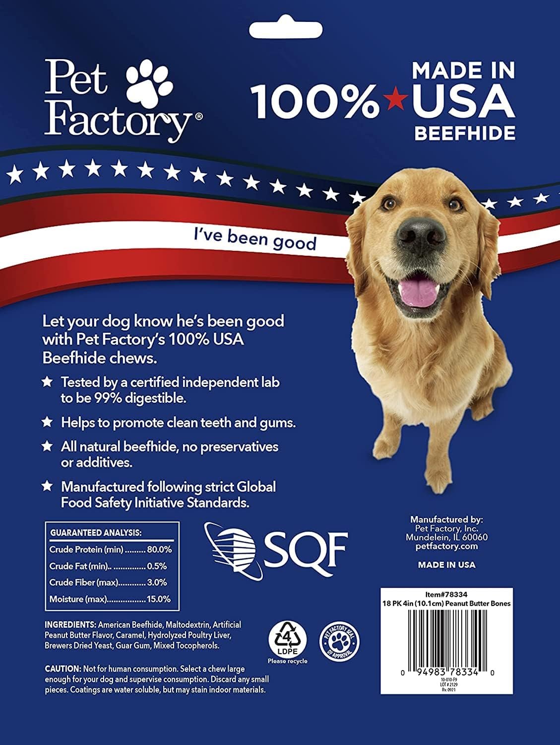 ABOUT US: Pet Factory has been the nation’s premiere manufacturer of USA-sourced beefhide bones and chews; our beefhide products come in a variety of shapes and sizes for every dog, including knotted bones, rolls, and chips in various flavors
