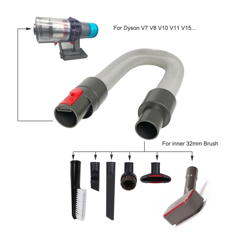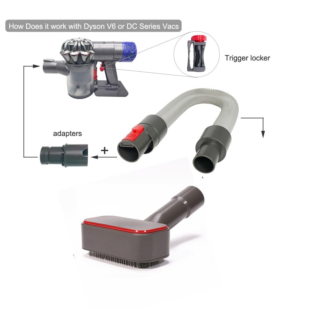 The extension hose of the dog brush vacuum attachment for dyson connects directly to your Dyson V7 V8 V10 V11 V12 V15 without the use of adapters.