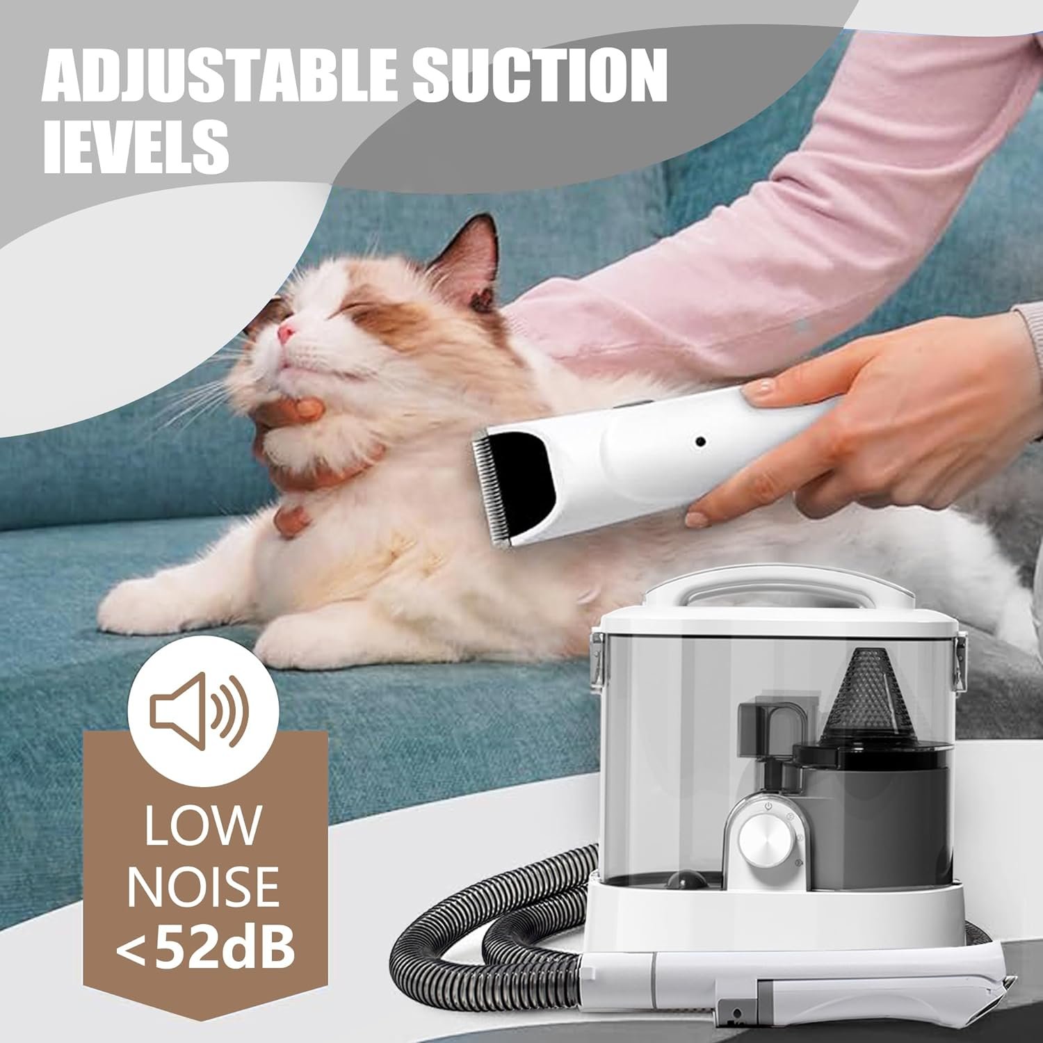 LOW NOISE: At Below 55 dB, this pet grooming vacuum is as quiet as a normal conversation. Your pets will remain at ease during grooming on the Min Suction Mode. For the first use, We suggest grooming your pet with our pet massage comb before trimming and treating your pet with little snacks to avoid your pet getting nervous because of the vacuuming noise.