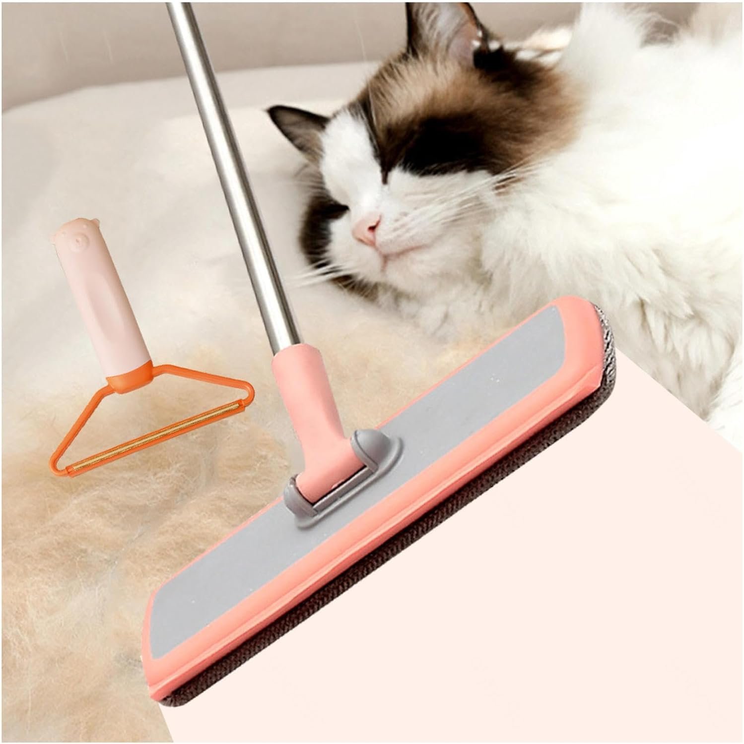 Pet Hair Carpet Rake, 2 Pcs, 41Adjustable Long Handle Reusable Cat Hair Remover Carpet for Couch, Clothes,Rugs,Stairs,Pet Towers,Window,Pink