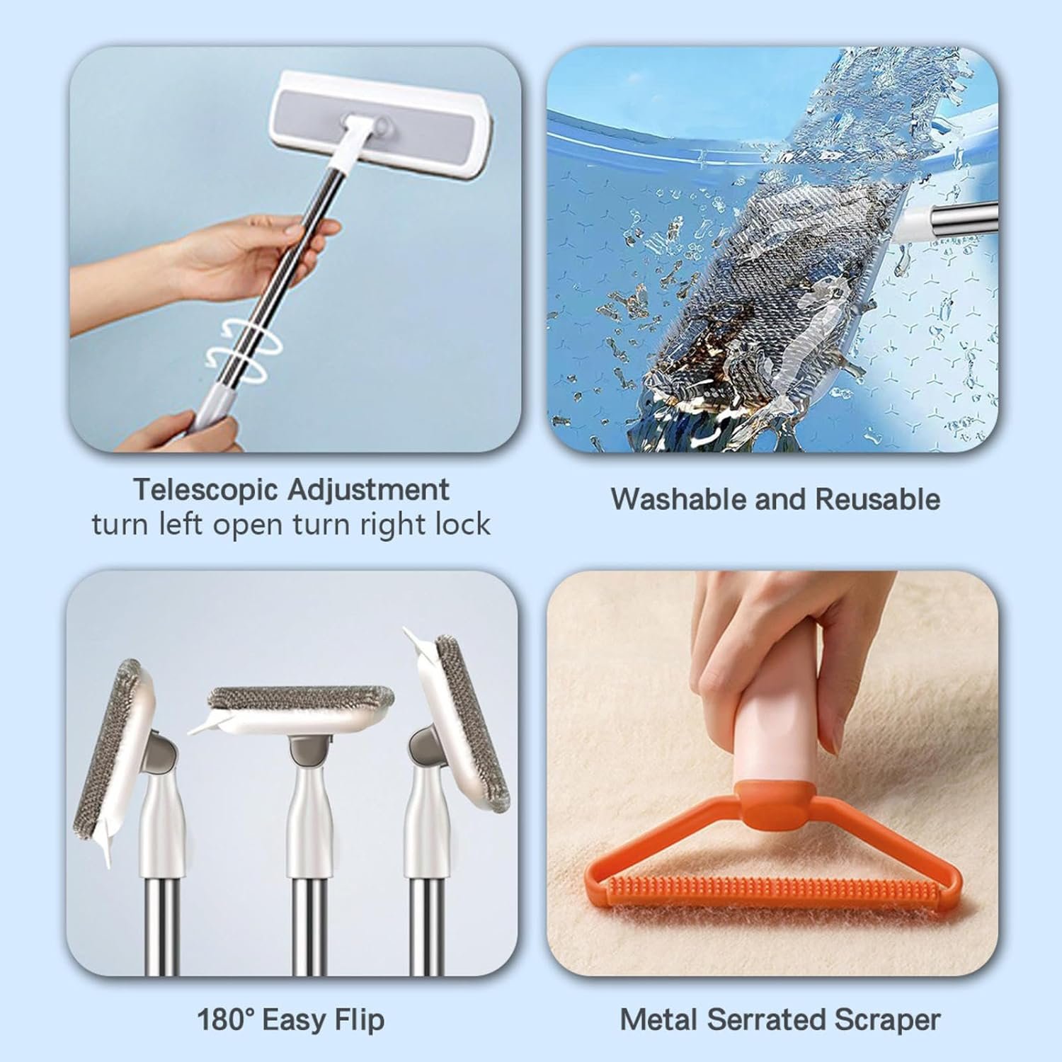 Telescoping Handle:The Rake For Pet Hair Removal Strong Handle Can Be Removed And Easy To Install, That Can Adjust Size You Need. Long Enough Size Can Clean Any Hard To Reach Place.