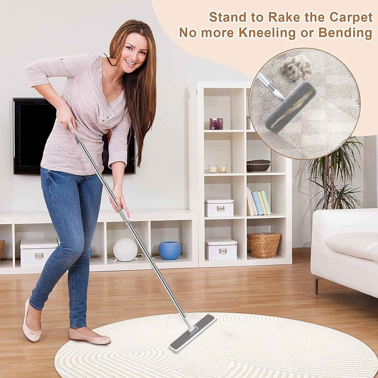 Say Goodbye To Kneeling And Bending: Designed With A Comfortable Long Handle, This Carpet Rake For Pet Hair Removal Ensures Easy Access To Hard-To-Reach Areas, While Saving You From Bending Or Crouching Down To Clean, No More Back Tense Or Pain.