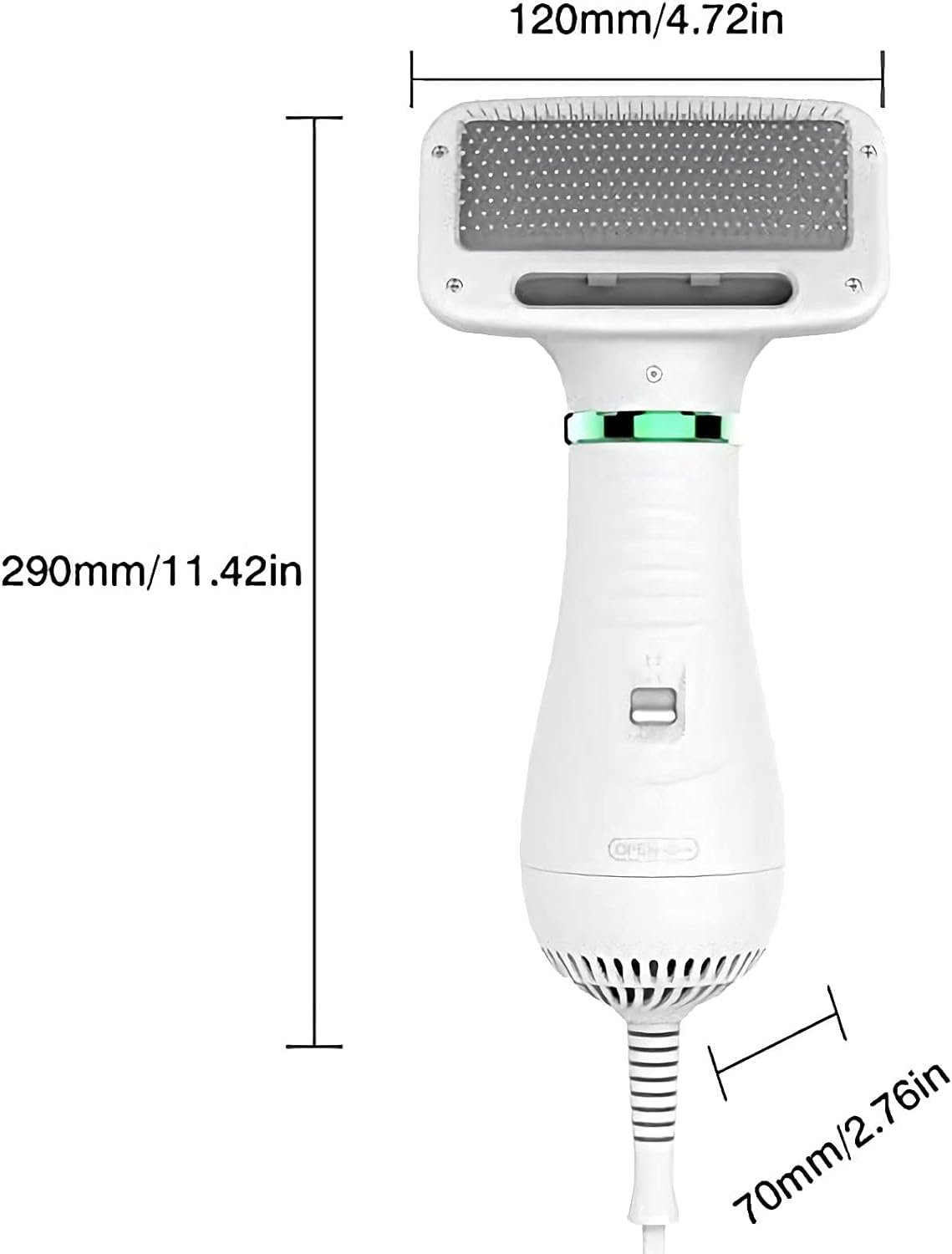 Pet Hair Dryer 2 in 1 Portable Home Pet Grooming Hair Dryer with Slicker Brush and Fur Remover Adjustable Temperature Settings and Low Noise