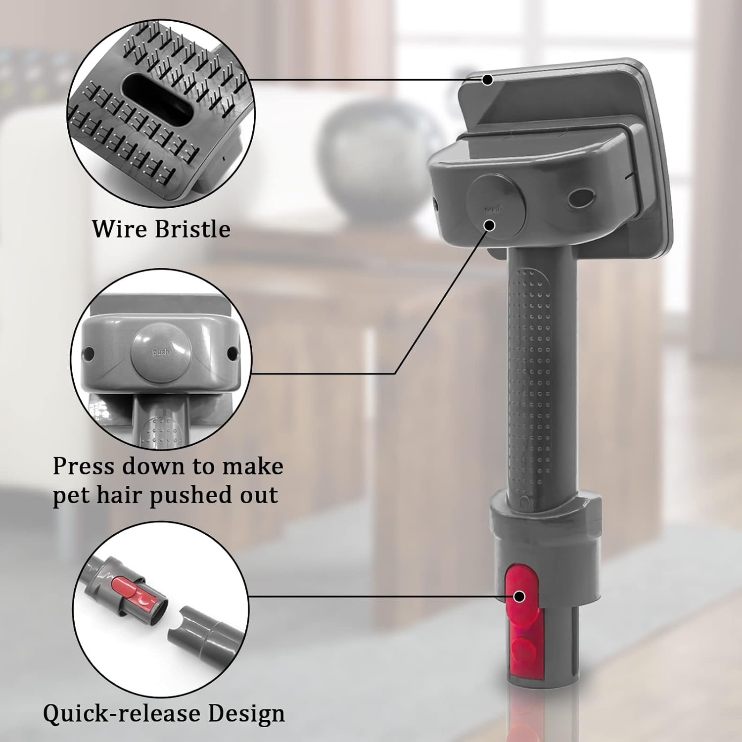 🐱【Efficient Hair Removal】Say goodbye to pet hair on your furniture and floors with our grooming brush that quickly and effectively removes loose hair from your pets and sucks it up with your Dyson vacuum.