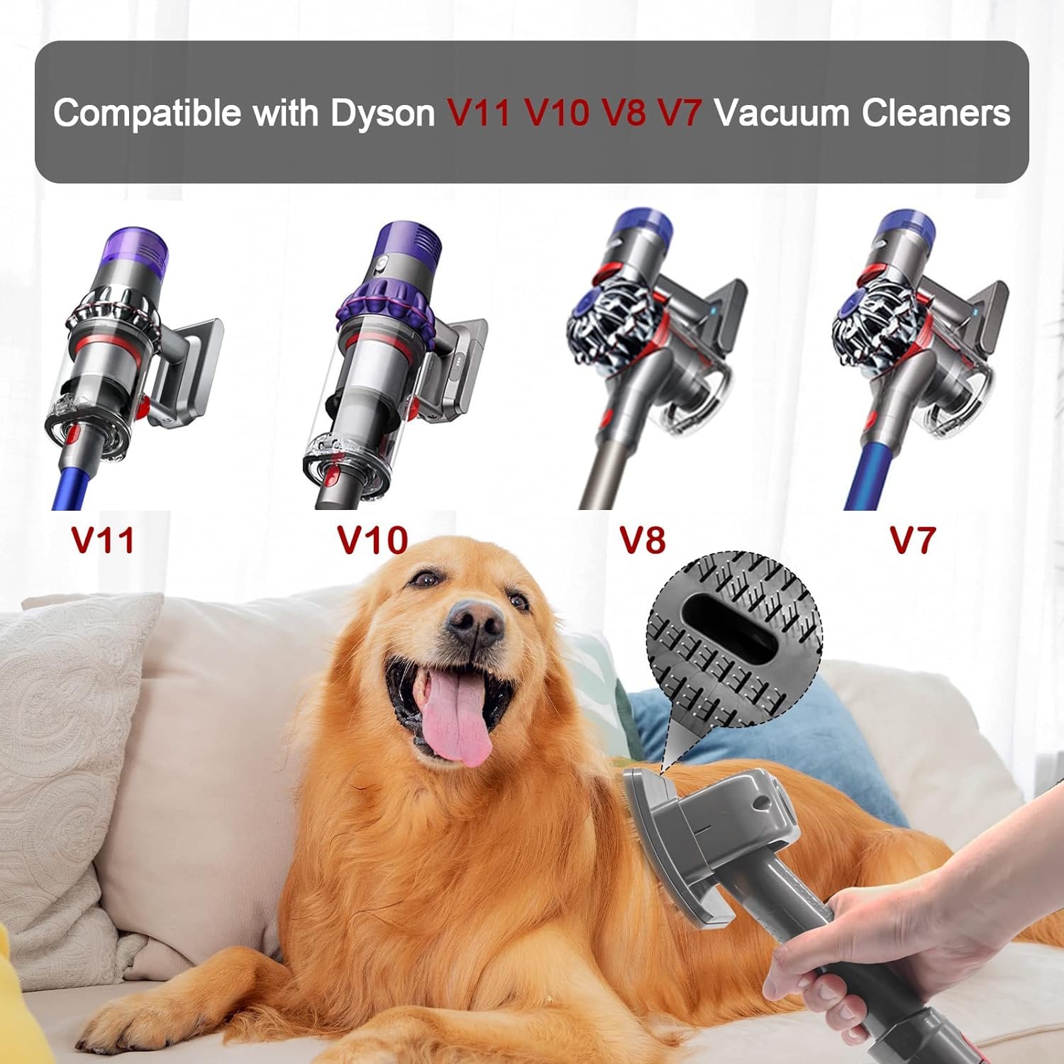 Pet Hair Remover for Dyson V7 V8 V10 V11, Grooming Tool for Dogs and Cats, No More Pet Hair on Furniture and Floors