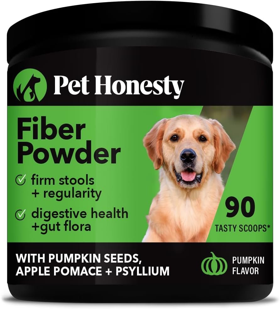 HONESTY IN EVERY BOWL: Pet Honesty’s fiber powder supplement boosts mealtime with a powerhouse blend of all-natural fiber superstars like pumpkin, apple pectin, and psyllium husk. Say goodbye to digestion drama – this tasty fiber powder dog food topper gets to work fast to help make their tummy troubles and bowel issues a thing of the past. No more crumbling chews into their food, just effortless daily relief in your pantry!