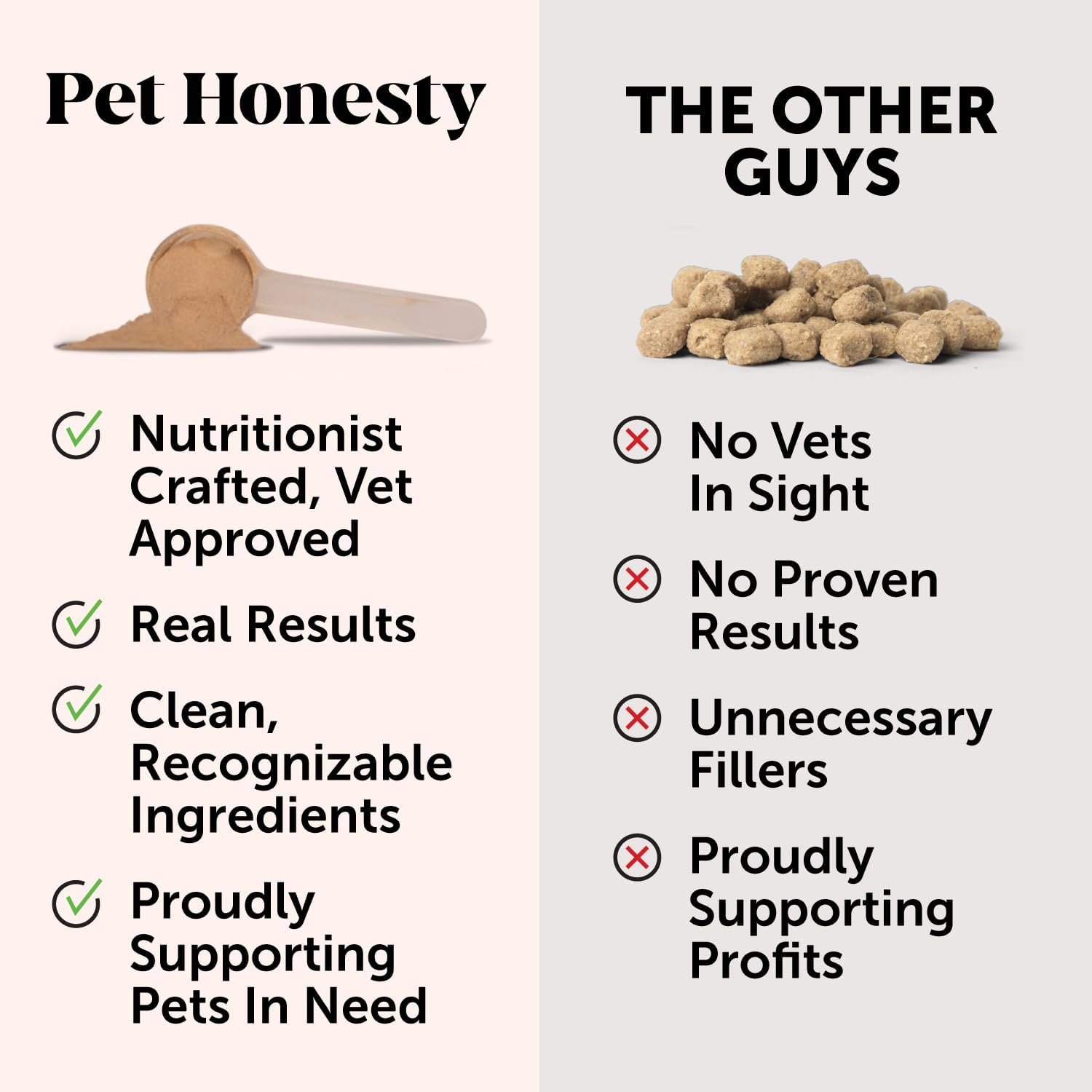 PET HONESTY PLEDGE: Clean + science-backed ingredients. Recognizable ingredients, without useless fillers. Drool-worthy taste. Pet Honesty offers 50+ products to target your pet’s unique needs…because we believe all pets deserve more joyful moments.