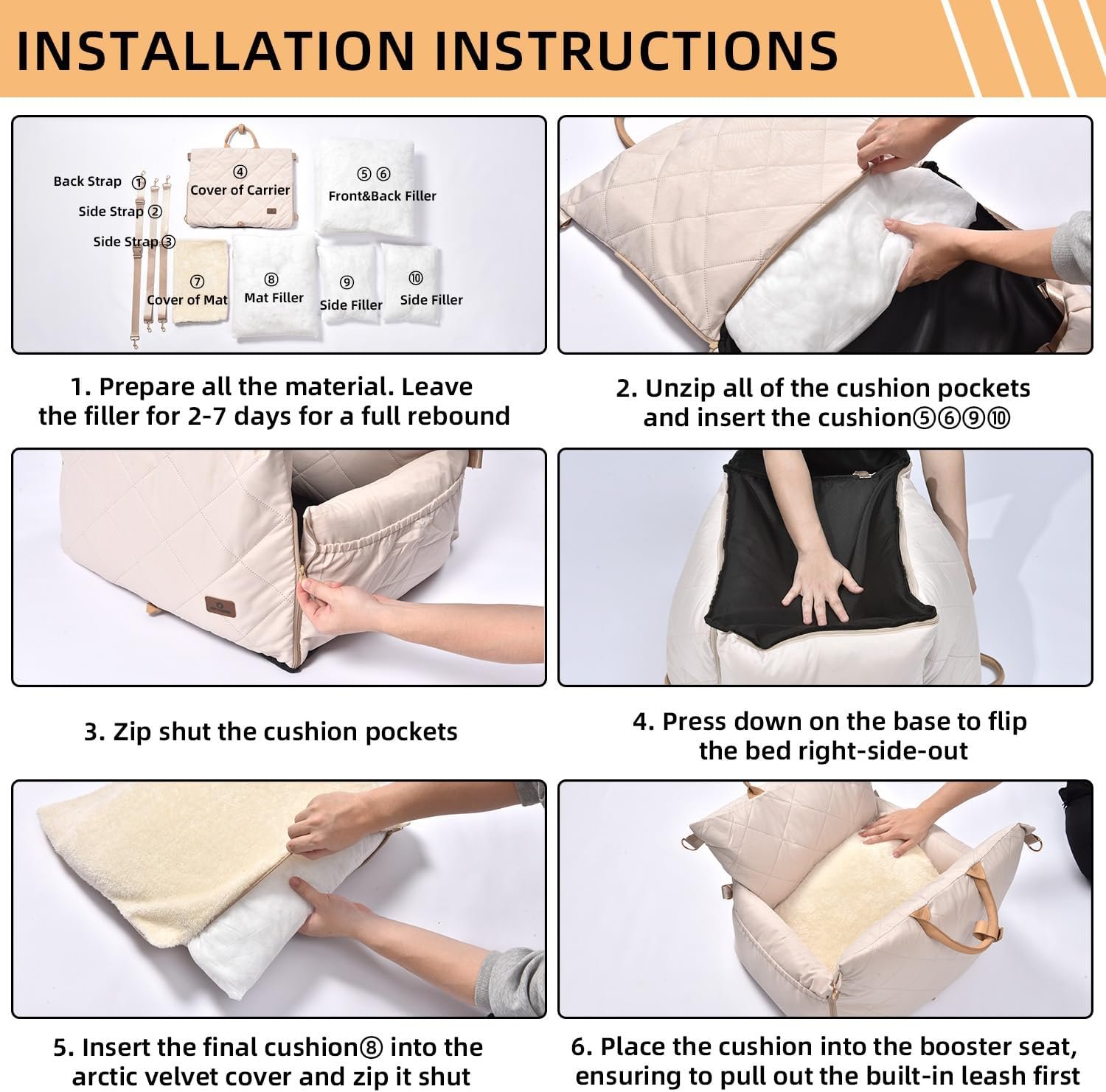 Fully Detachable and Washable: Designed with convenience in mind, our pet car seat features a fully detachable structure and smooth sliding zippers, making cleaning effortless. The padding around the entire seat, including all four sides, and the inner lining of the base are completely removable. Its waterproof Oxford fabric cover simplifies the washing process even further.