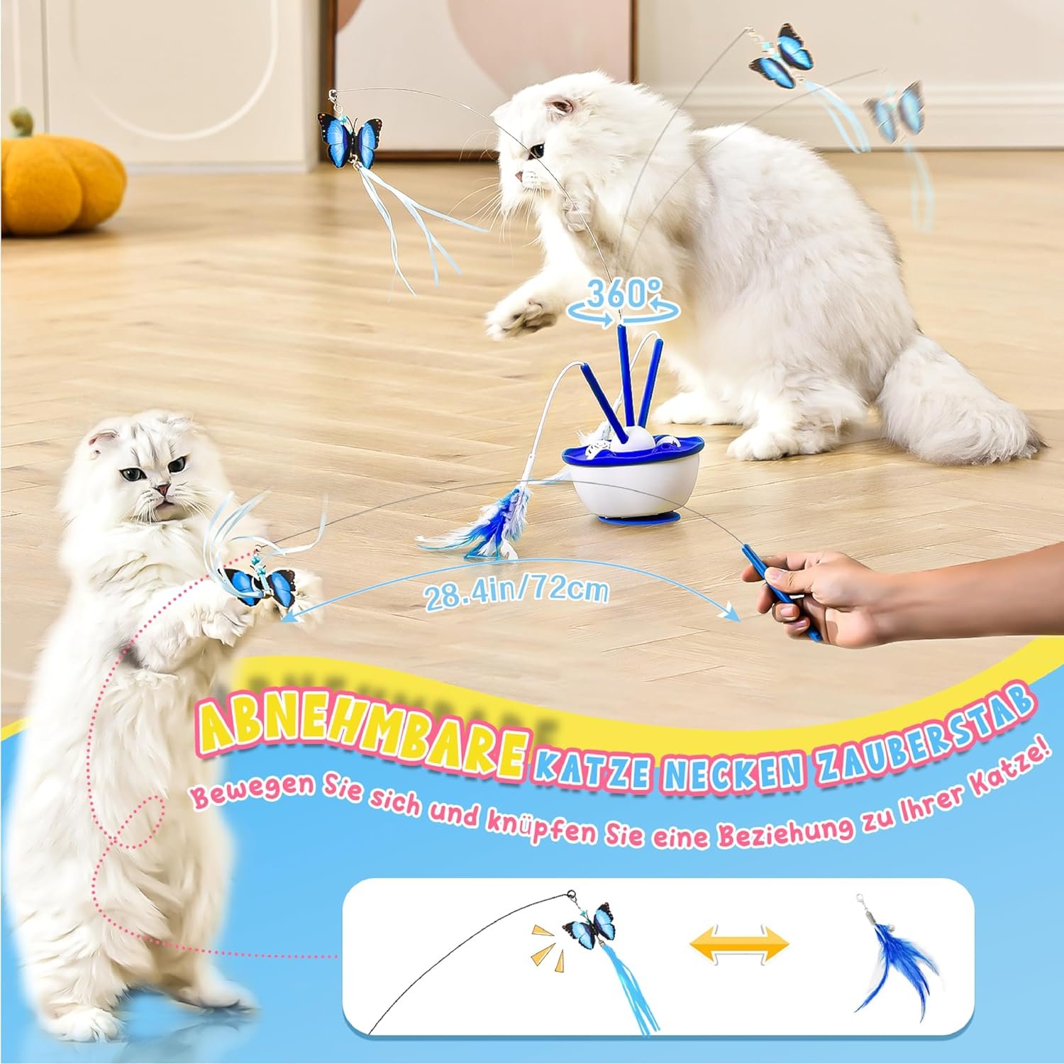 Removable teaser wands offer feather and butterfly-replaceable attachments to keep cats entertained. Some, allow for variety and extend the life of the toy. teaser wands are an excellent tool for bonding with your cat, providing enrichment, and preventing boredom.