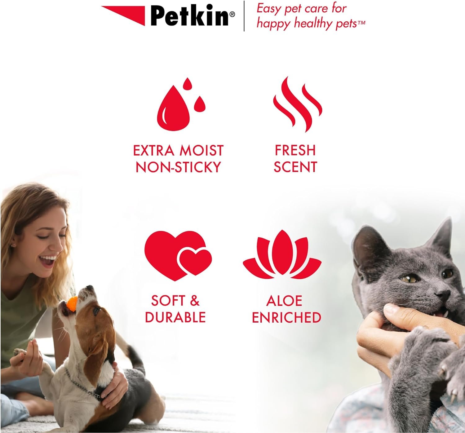 Petkin Pet Wipes for Dogs and Cats – These large pet grooming wipes are a fast, convenient way to freshen up your pet every day. These powerful cleaning wipes easily remove daily dirt and odor, just like washing hands. Includes 4 packs of 100 wipes (400 wipes total).