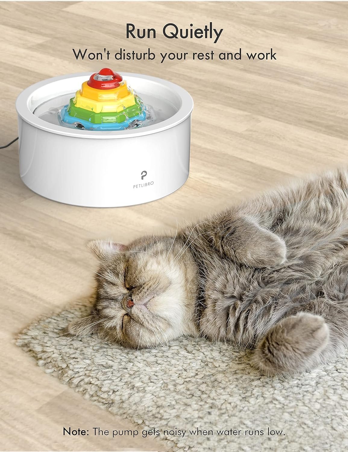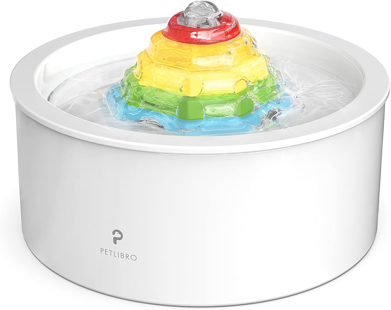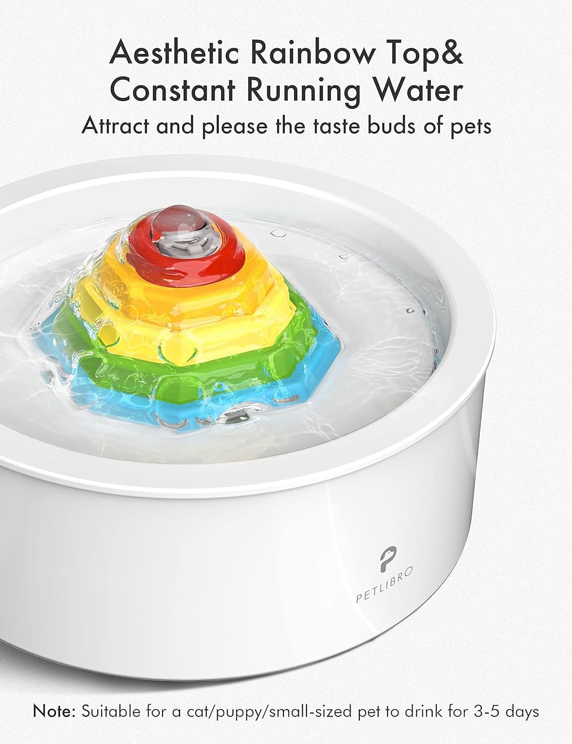 Rainbow Design & Fresher: PETLIBRO ceramic cat water fountain has a sleek and modern rainbow design, the colorful rainbow top and running water will definitely lure your pet into drinking more water, preventing your pet from suffering from urinary and kidney disease.