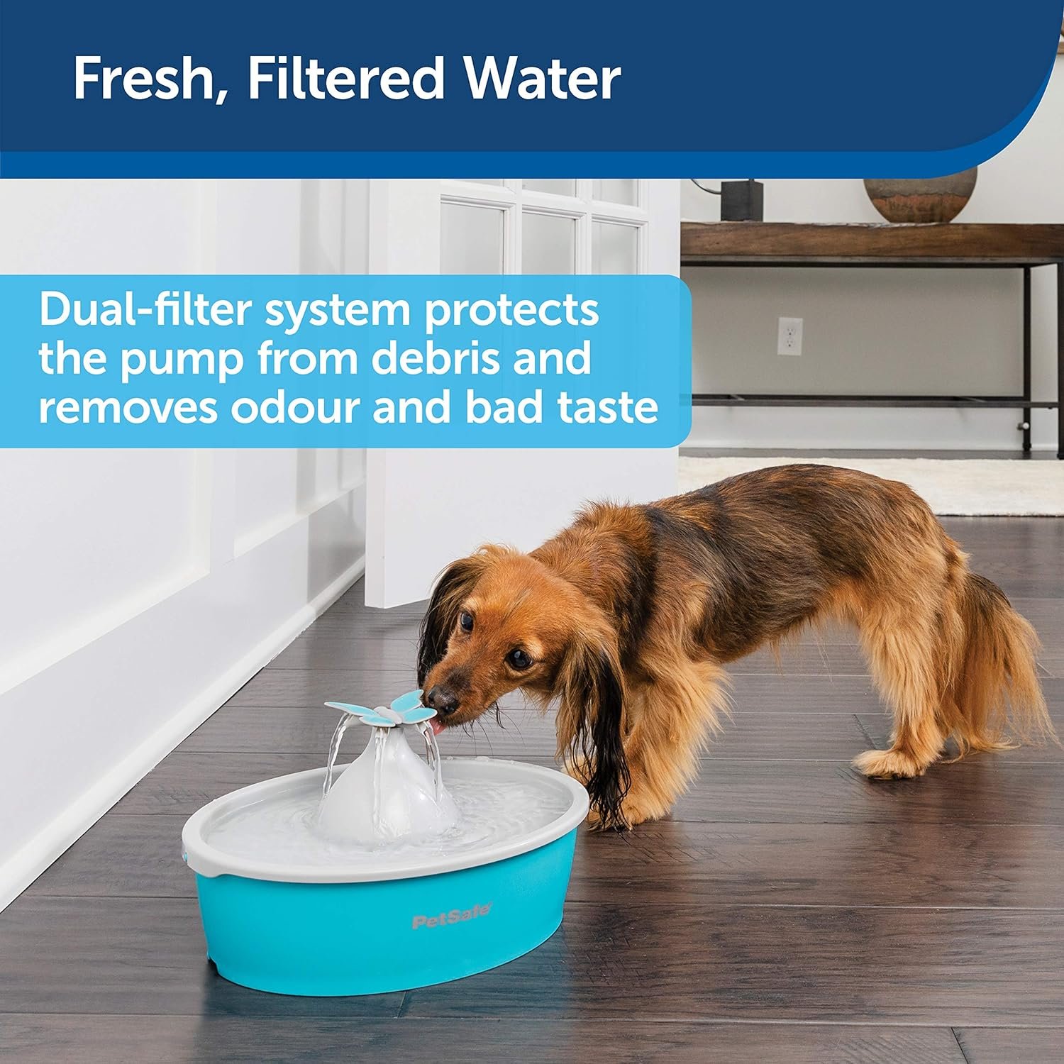 FRESH FLOWING WATER: Replaceable carbon filter removes bad tastes and odours while the foam filter catches pet hair and debris