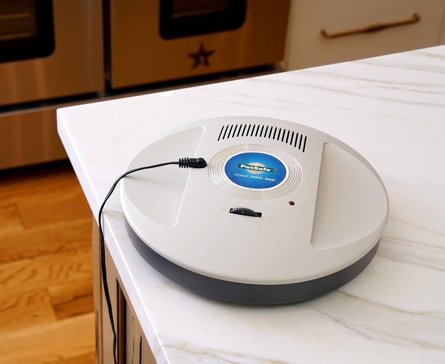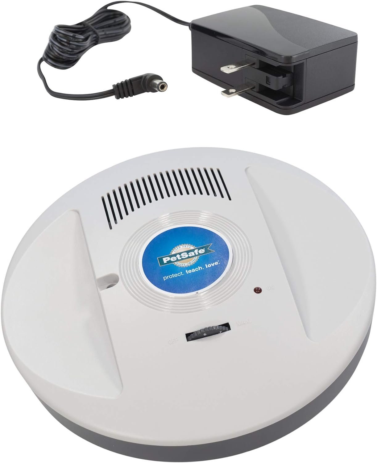 ADJUSTABLE RANGE: Electronic barrier protects areas up to 10 ft. radius (operating range may be affected by a variety of factors including metal objects); must plug into a power source