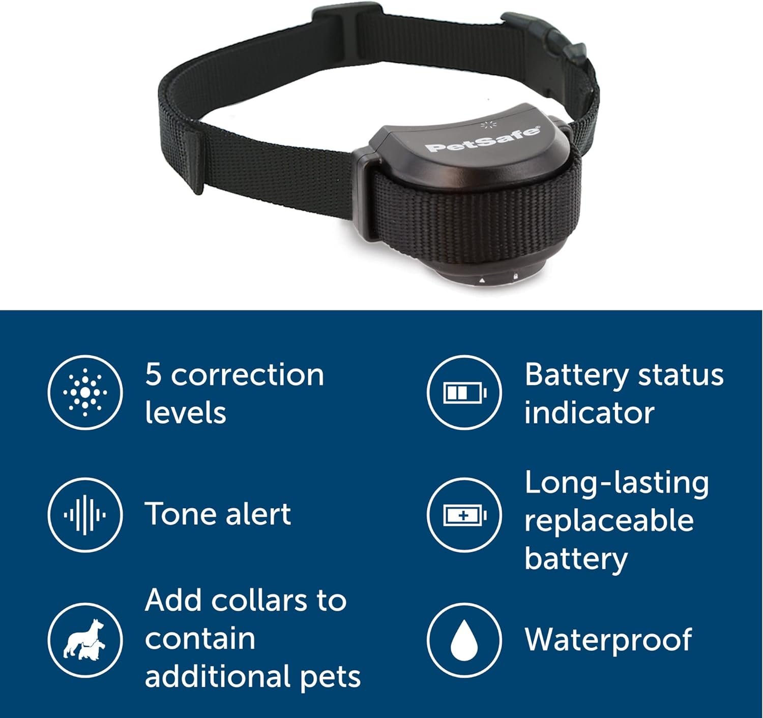 WATERPROOF COLLAR: The waterproof collar comfortably fits small, medium, and large pets 5 pounds and up and adjusts to fit neck sizes 6-28 inches; compatible with all PetSafe Wireless Fence transmitters
