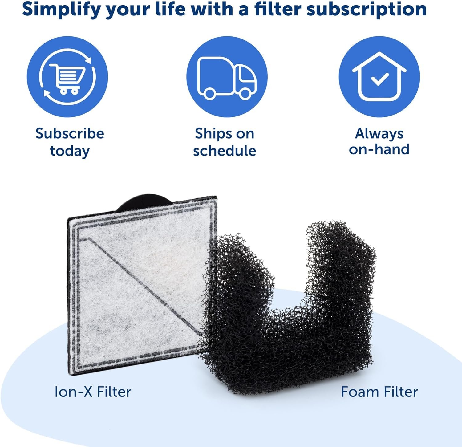 DOUBLE FILTRATION: The foam and Ion-X filters catch debris and filter out bad tastes, ensuring your pet’s drinking water stays clean and tasting great