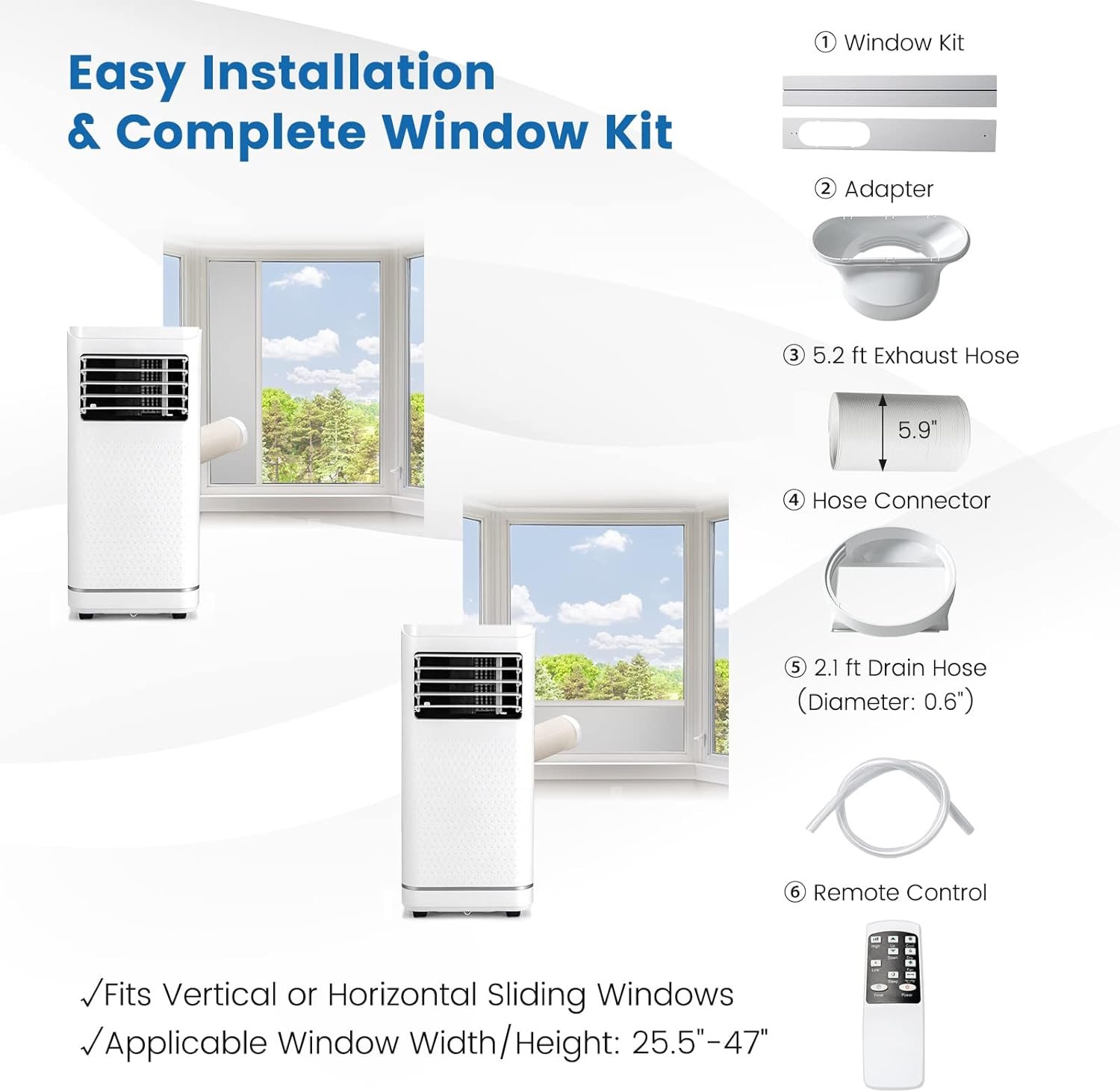 Easy Installation & Humanized Design: Complete window kit and instructions for easy installation on vertical/horizontal sliding windows(suitable width/height: 25.5″-47″). Built-in handles and 4 wheels ensure free movement.