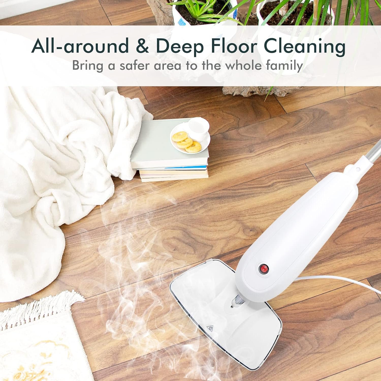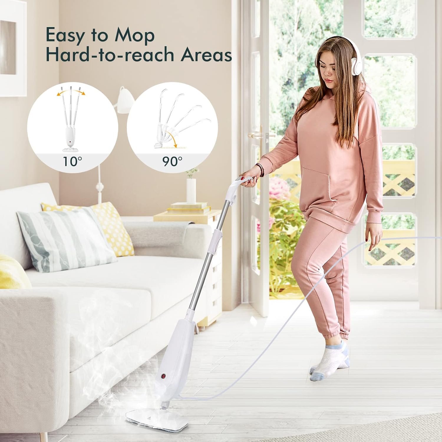 Compact and Lightweight Steam Mop: Thanks to its compact and lightweight design with a 17 ft cord that allows you to easily clean every corner of your home, and it comes with hooks for wrapping long power cords for easy storage.
