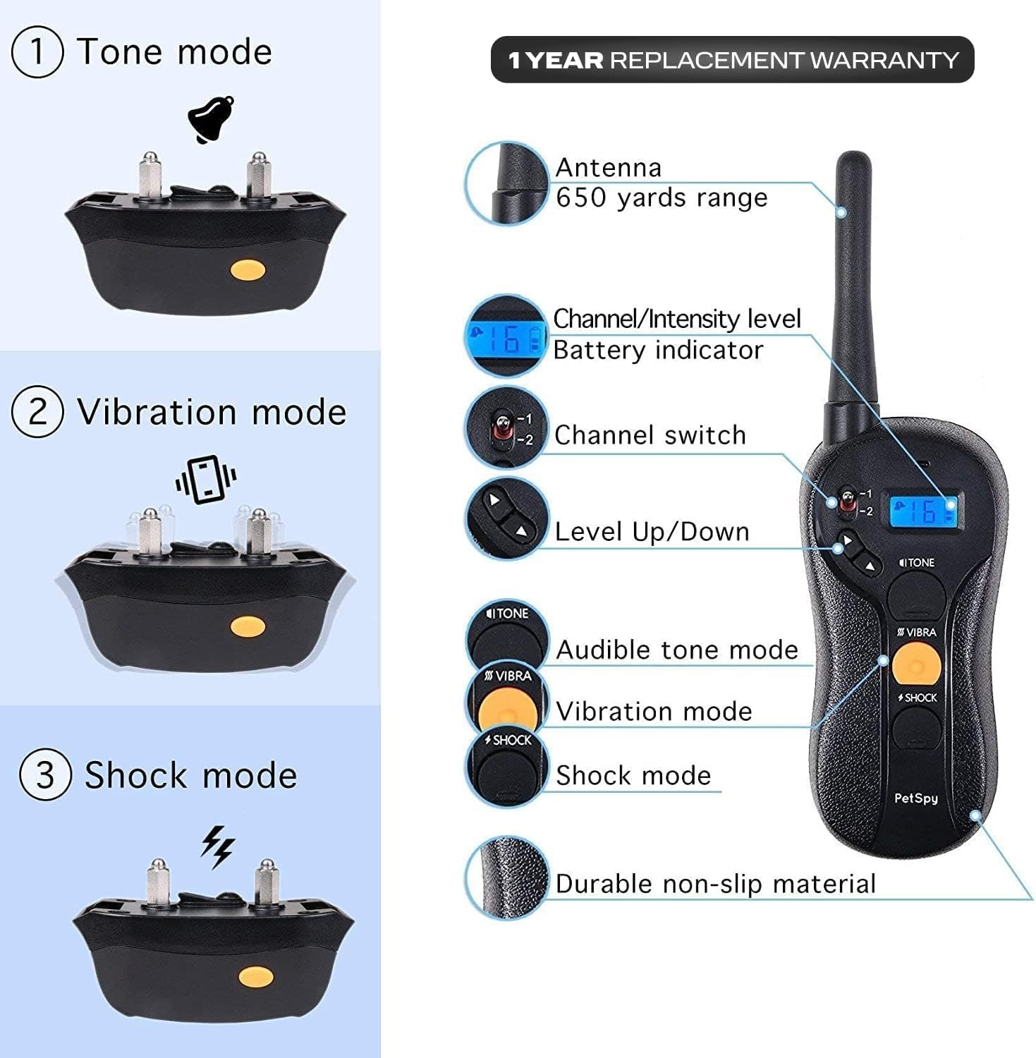 1-YEAR PROMISE: Have any issues with your shock collar for large dog? Just contact our 24/7 customer support team.