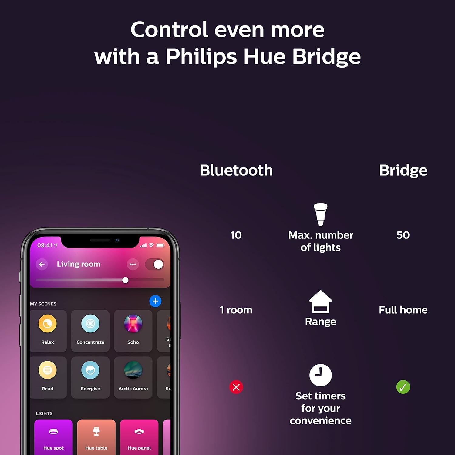 CONTROL IT YOUR WAY: Easily control your smart lights with the touch of a button on the Hue App or just the sound of your voice. You can also add smart accessories to your system to enjoy the convenience of controlling your entire house, inside and outside.