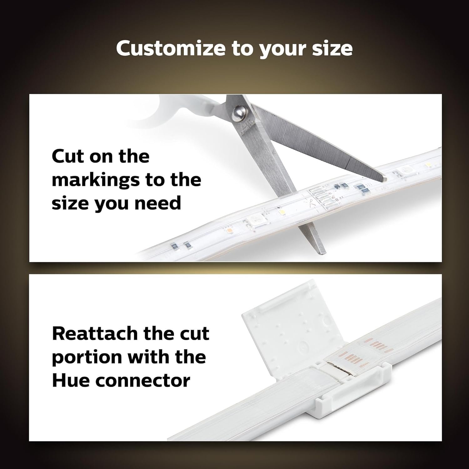 HOW TO USE: Install the flexible Bluetooth LightStrip under bars, bed frames, or cabinets, with the included adhesive tape. Trim it to the perfect size with the included cut marks. Connect up to 32 feet of extension per base kit.