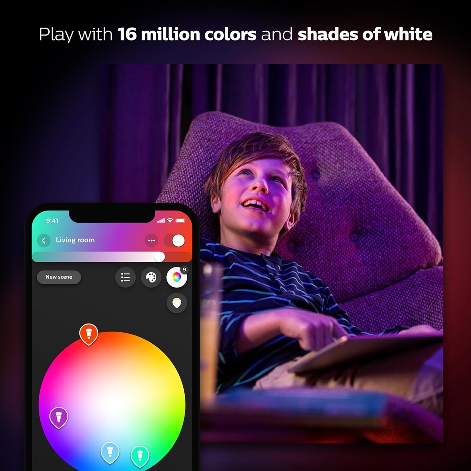 Limitness Posibilities: Choose from 16 million Colors and shades of White to turn Your everyday Smart Lighting into an extraordinary Experience; Hue Color lights are Controlled remotely with Your Smartphone or Tablet, create custom scenes and unleash Your creativity